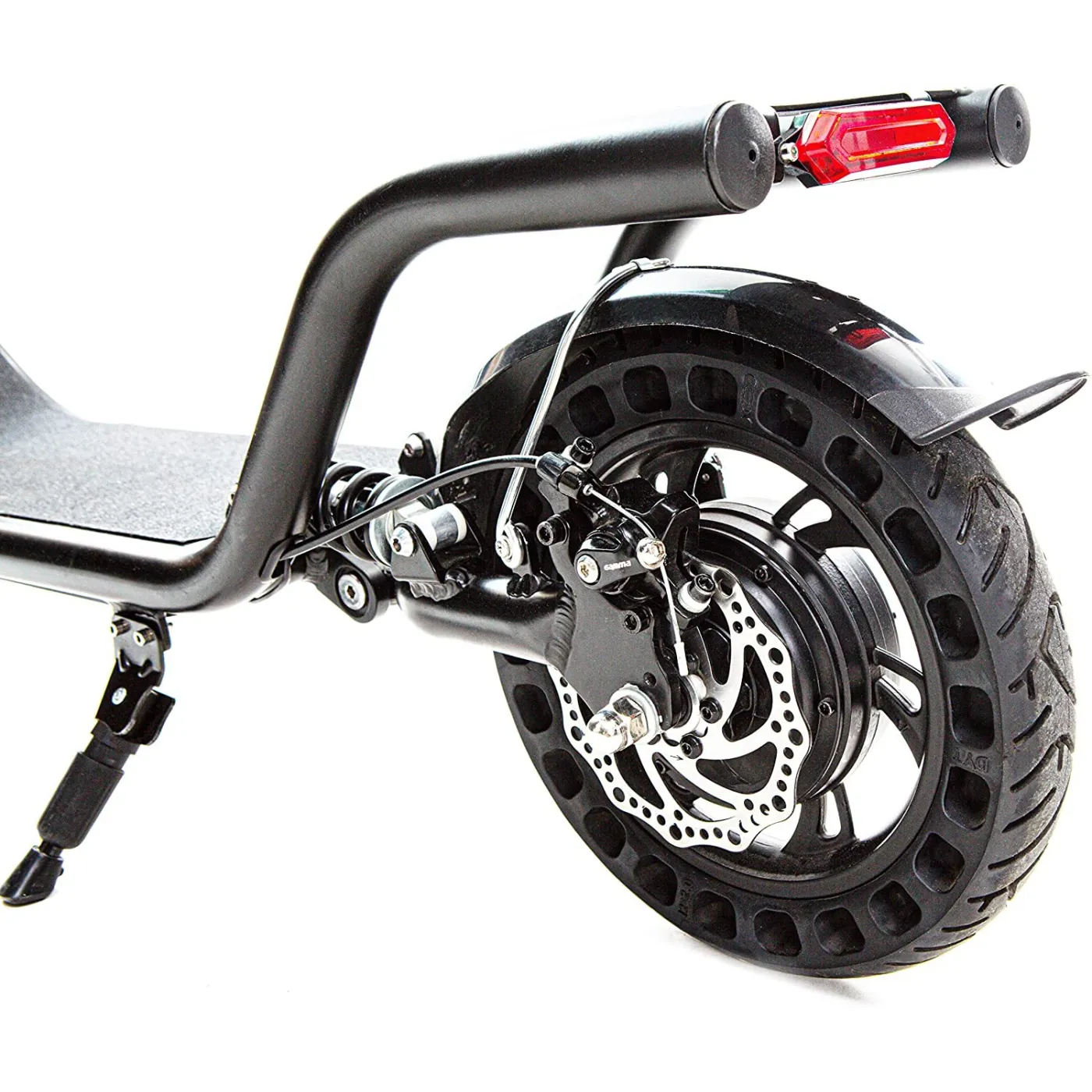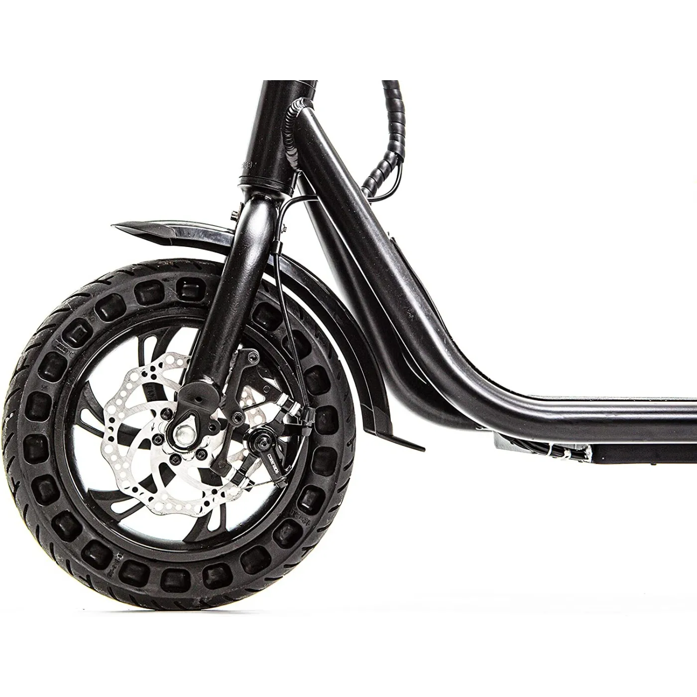 Hamulec tarczowy pozwala na zatrzymanie lub zwolnienie w bezpieczny i skuteczny sposób. Nad bezpieczeństwem użytkownika czuwają również światła zamontowane z przodu i z tyłu hulajnogi.