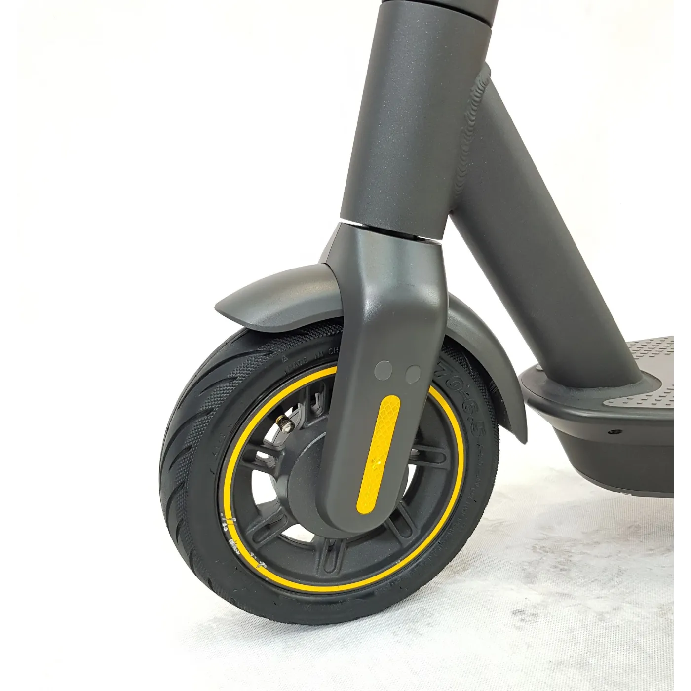 KickScooter MAX jest wyposażony w akumulator dalekiego zasięgu, włączając w to dwa rozwiązania dla lepszego ładowania i osiągnięcia największego maksymalnego zasięgu do 65 km. Oferuje możliwość osiągnięcia największego zasięgu z modeli dostępnych na rynku, przy maksymalnej prędkości do 25 km/h. 10 calowa bezdętkowa pneumatyczna opona zapewni przyjemną jazdę i będzie wymagała mniej konserwacji: jest zaopatrzona w dodatkową warstwę żelową, co zmniejsza ryzyko jej przebicia.