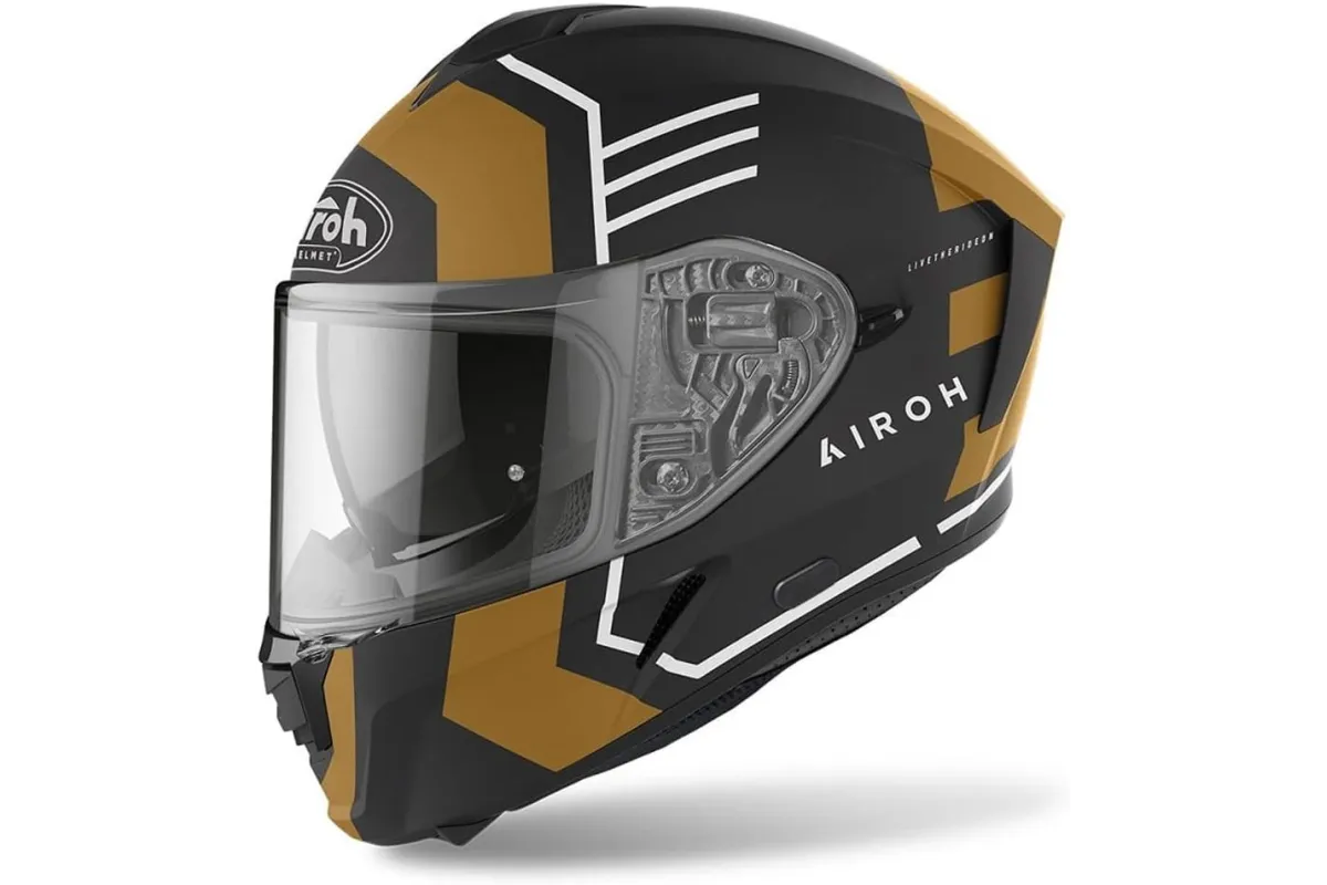 🏍️ Airoh Spark Thrill Gold Matt to wyjątkowy kask motocyklowy integralny, stworzony dla miłośników szybkiej i bezpiecznej jazdy. Jego nowoczesny design w kolorze matowego złota z czarnymi akcentami nadaje mu niepowtarzalny, elegancki wygląd, który wyróżni Cię na drodze. Kask został zaprojektowany z myślą o maksymalnym komforcie, bezpieczeństwie oraz aerodynamice, co czyni go idealnym wyborem zarówno do jazdy miejskiej, jak i długodystansowej.
