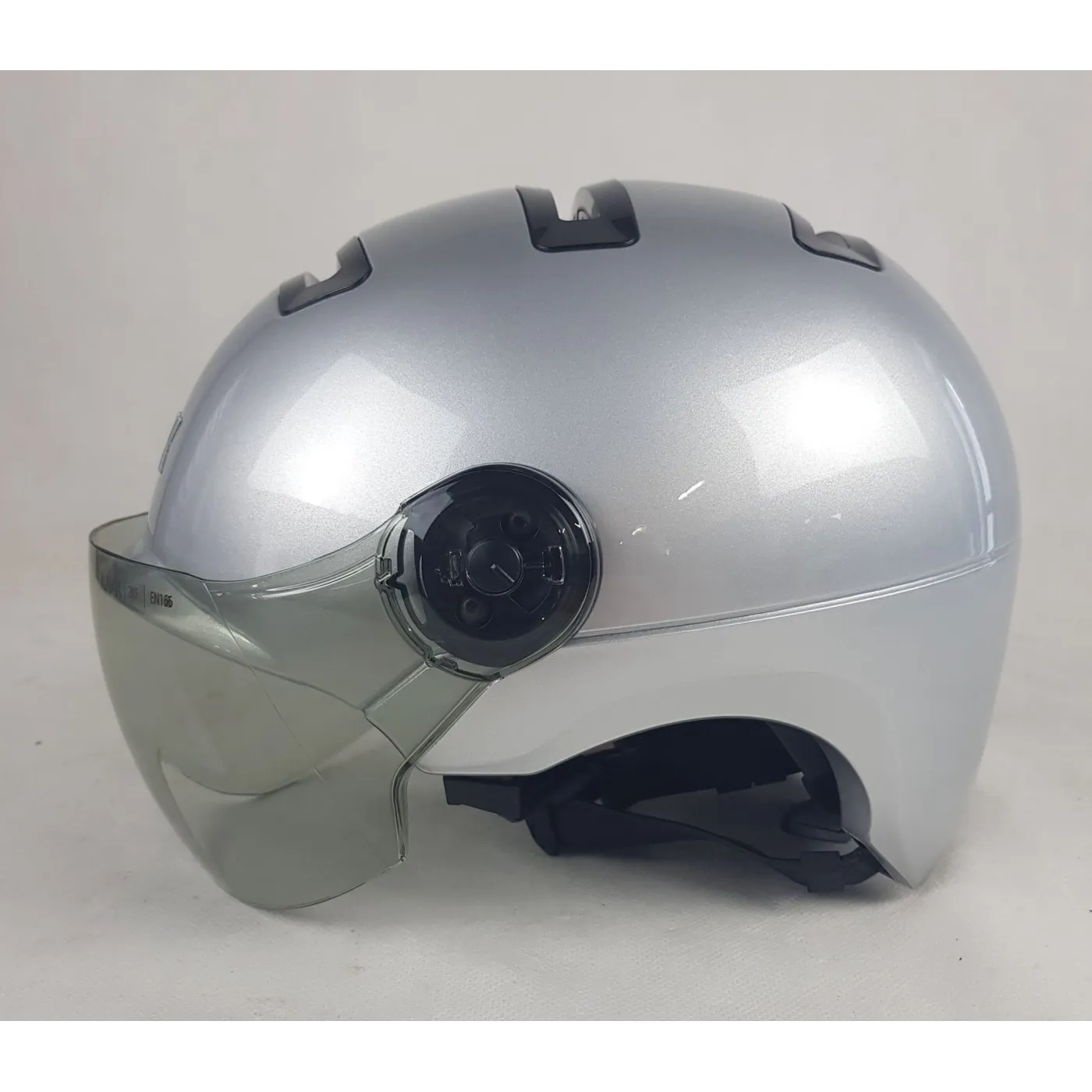 Kask rowerowy Urban R firmy Kask został zaprojektowany, aby zapewnić zarówno bezpieczeństwo, jak i styl rowerzystom miejskim. Trzy zintegrowane otwory wentylacyjne obejmują górną część kasku i można je regulować za pomocą tylnej dźwigni, aby kontrolować ilość przepływu powietrza w celu dostosowania do potrzeb rowerzystów poruszających się po mieście. Można je również zamknąć w deszczowe dni, aby chronić przed wilgocią. Wymienny wizjer w różnych odcieniach pomaga kontrolować jasność, a pasek podbródkowy ze skóry syntetycznej dodaje klasy i komfortu jednocześnie.