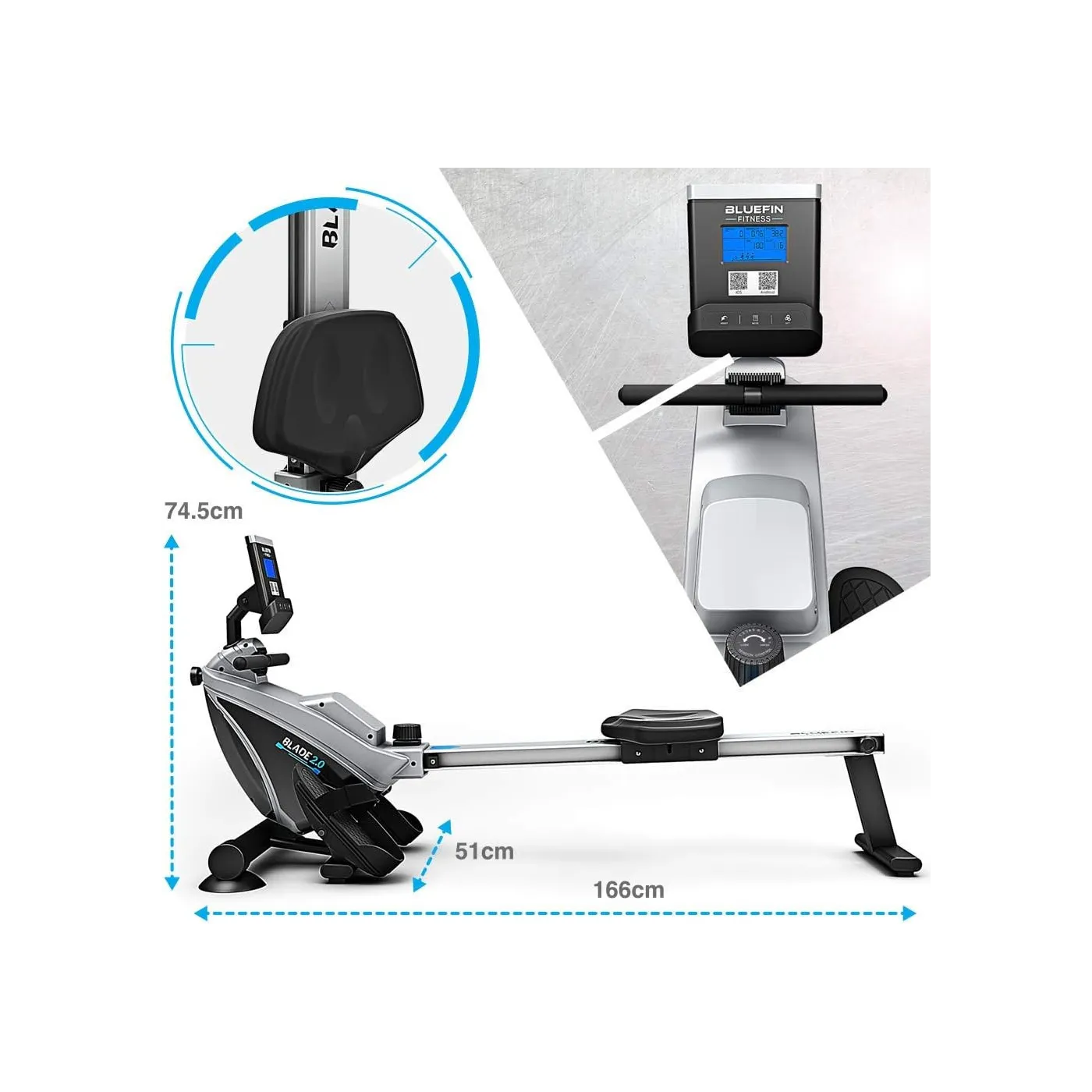 Bluefin Fitness BLADE 2.0 to nowoczesny wioślarz treningowy stworzony do efektywnych i komfortowych ćwiczeń w domu. Cicha praca, kompaktowa i składana konstrukcja oraz wsparcie aplikacji treningowej sprawiają, że idealnie nadaje się zarówno dla początkujących, jak i zaawansowanych użytkowników.