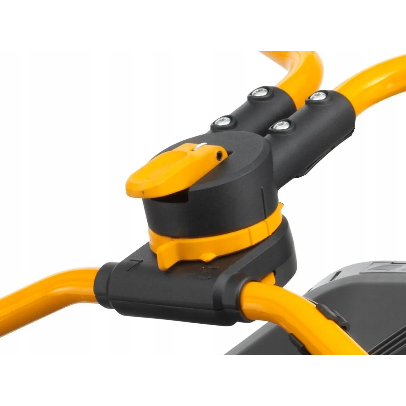 - 🧰 Ergonomiczna, składana kierownica Fulcrum – regulowana wysokość i miękki uchwyt zapewniają komfort podczas koszenia i łatwe przechowywanie.