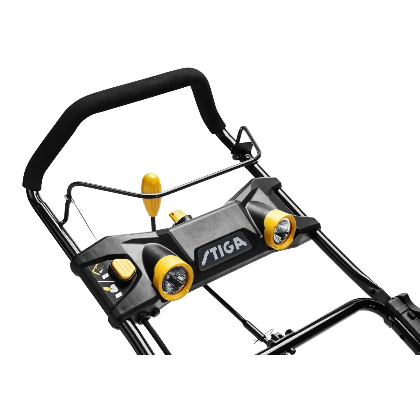 Odśnieżarka STIGA ST 4851 AE została wyposażona w dwie lampy LED umieszczone na kierownicy, które skutecznie oświetlają przestrzeń roboczą przed urządzeniem. Dzięki temu możliwe jest bezpieczne i wygodne odśnieżanie w ciemności lub przy ograniczonej widoczności. Jasne światło LED poprawia precyzję pracy i pozwala zachować pełną kontrolę nad odśnieżaną powierzchnią nawet w trudnych zimowych warunkach.