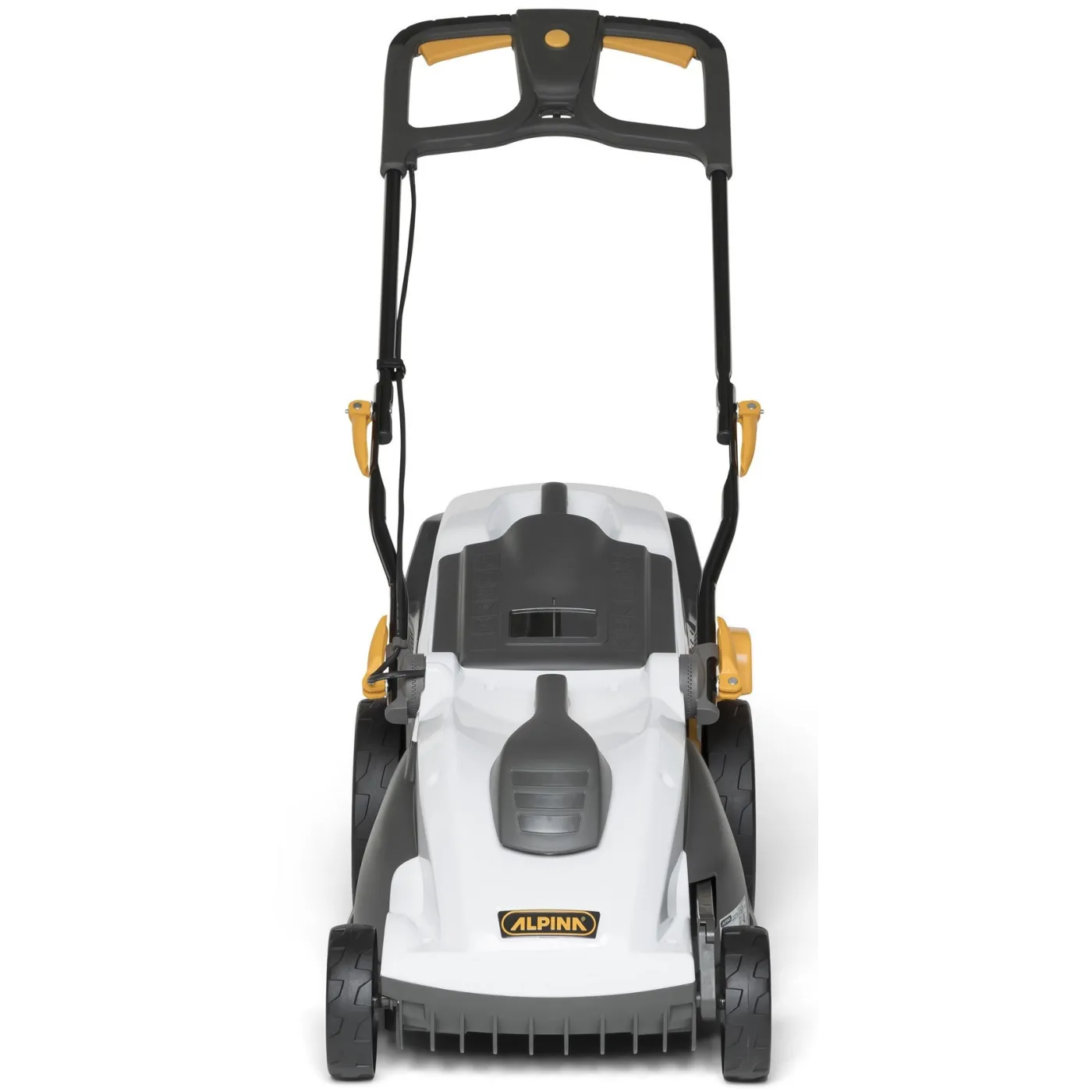 🌿 Precyzyjny system cięcia rotacyjnego – nóż łopatkowy o szerokości roboczej 38 cm gwarantuje równomierne koszenie na małych i średnich trawnikach.
