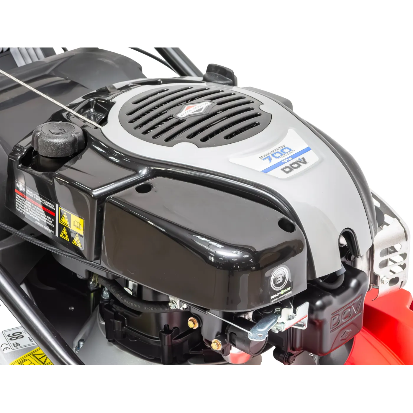 Urządzenie zostało wyposażone w silnik Briggs & Stratton 750 Series o pojemności 161 cm³, który zapewnia odpowiednią moc i sprawną pracę podczas regularnego koszenia. Dodatkowym atutem jest moc 2,7 kW oraz solidna konstrukcja, która dobrze sprawdza się w codziennym użytkowaniu.