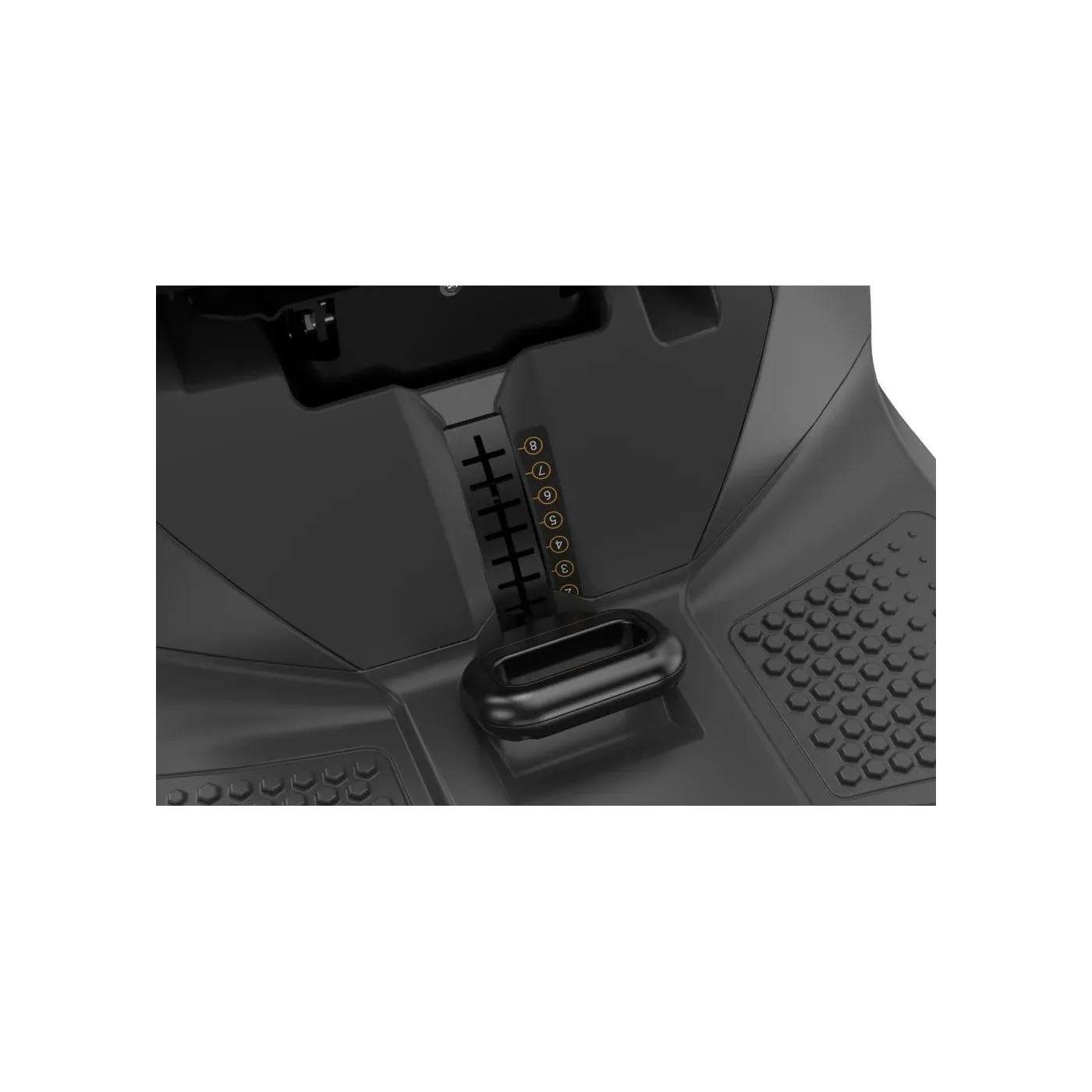 Ręczna regulacja wysokości koszenia odbywa się za pomocą lekkiej, centralnej dźwigni, co pozwala szybko i wygodnie zmienić ustawienie maszyny. Dzięki temu obsługa traktorka jest bardziej komfortowa, a efekt koszenia można łatwo dopasować do własnych potrzeb.