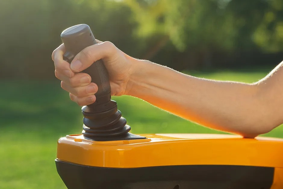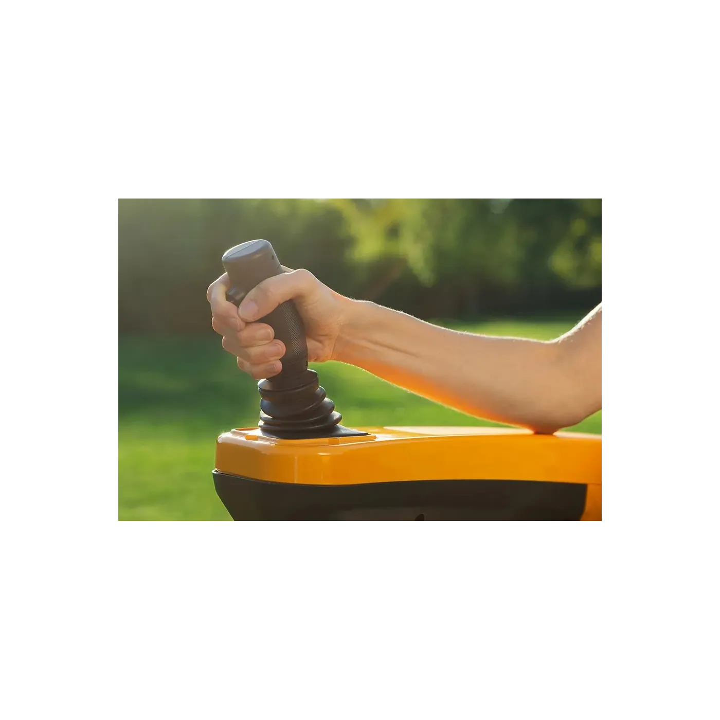 STIGA Gyro 700e została wyposażona w nowoczesny system drive-by-wire z joystickiem, który odpowiada za kierunek jazdy, skręt i prędkość. To rozwiązanie zapewnia bardzo intuicyjną obsługę oraz dużą precyzję manewrowania podczas koszenia wokół drzew, rabat i innych przeszkód.