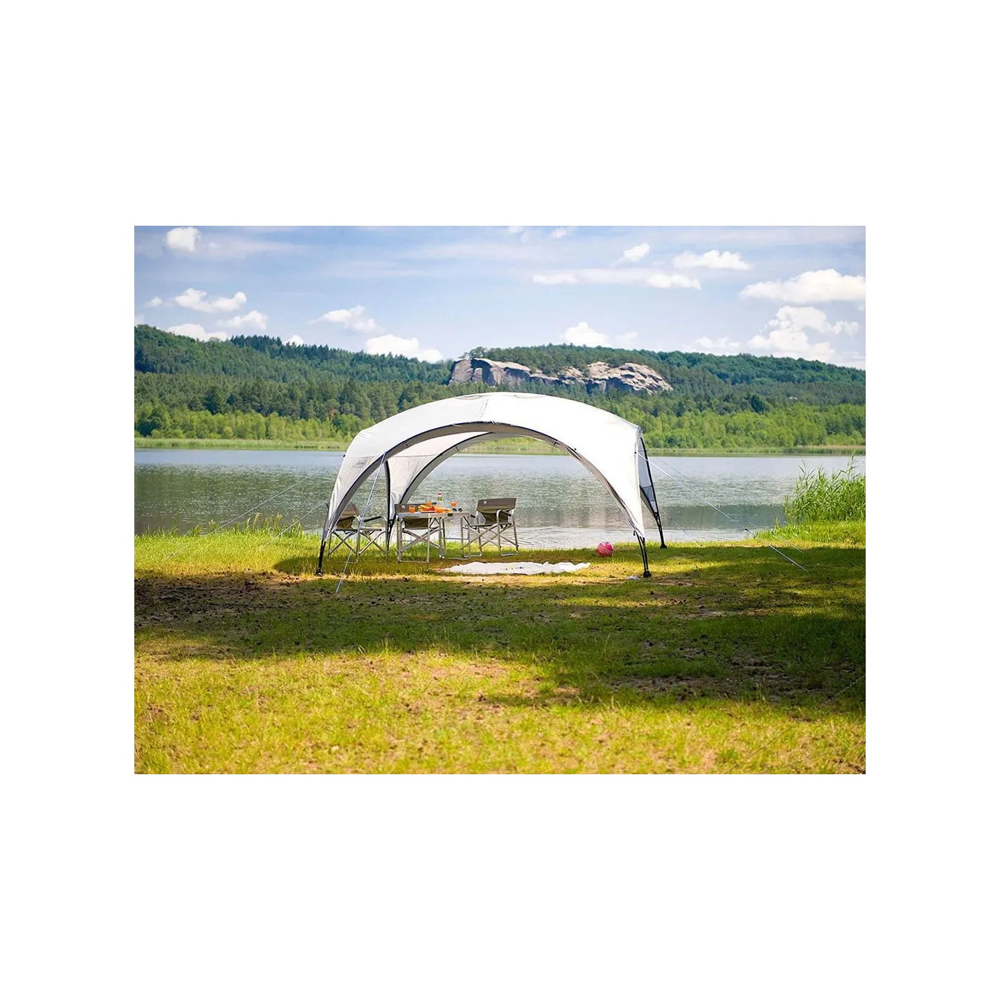 💎 Event Shelter XL ma nowoczesny wygląd i jest wyposażony w solidne stalowe rurki, które są połączone łącznikami. Specjalny kształt w połączeniu ze stalowymi rurkami zapewnia stabilną całość. Namiot oferuje wystarczająco dużo miejsca na stół i krzesła, dzięki czemu można spokojnie zjeść obiad lub wydać przyjęcie!