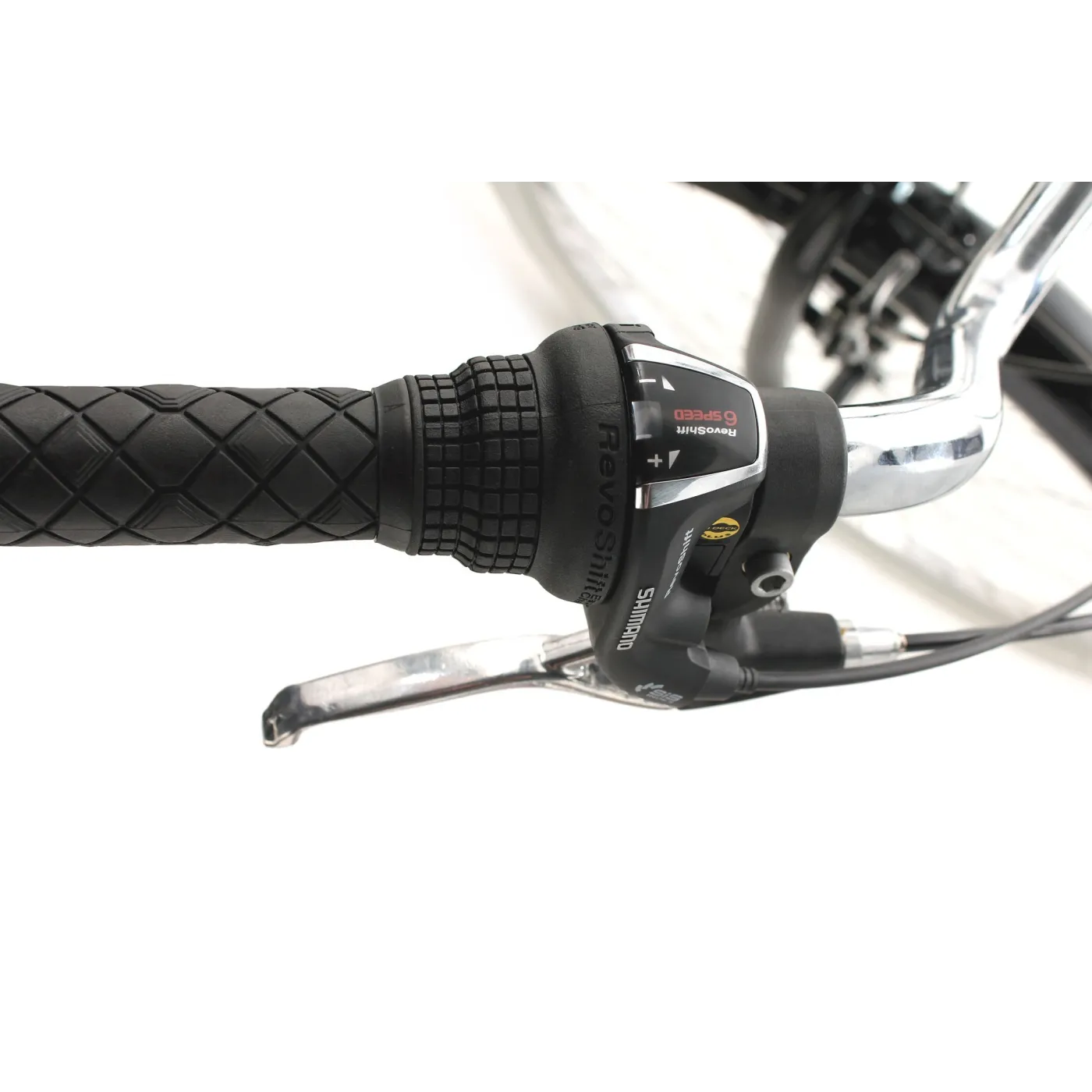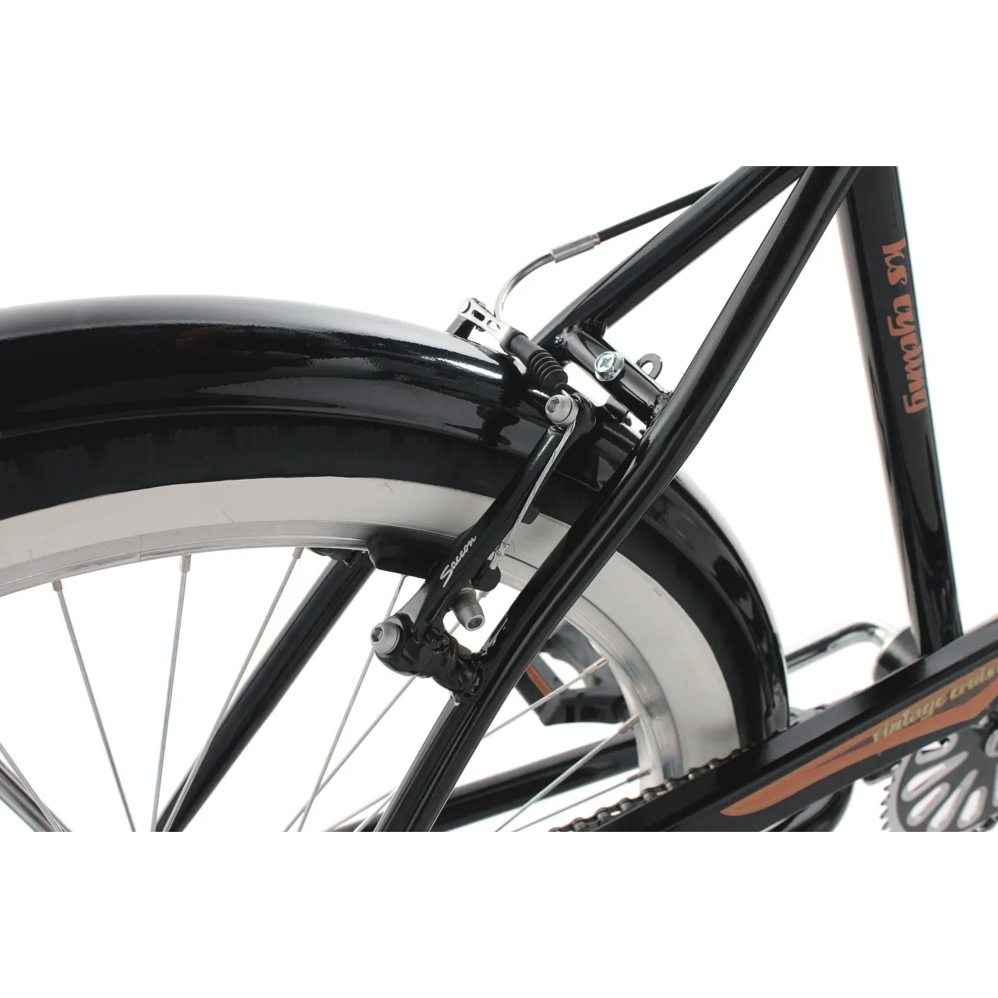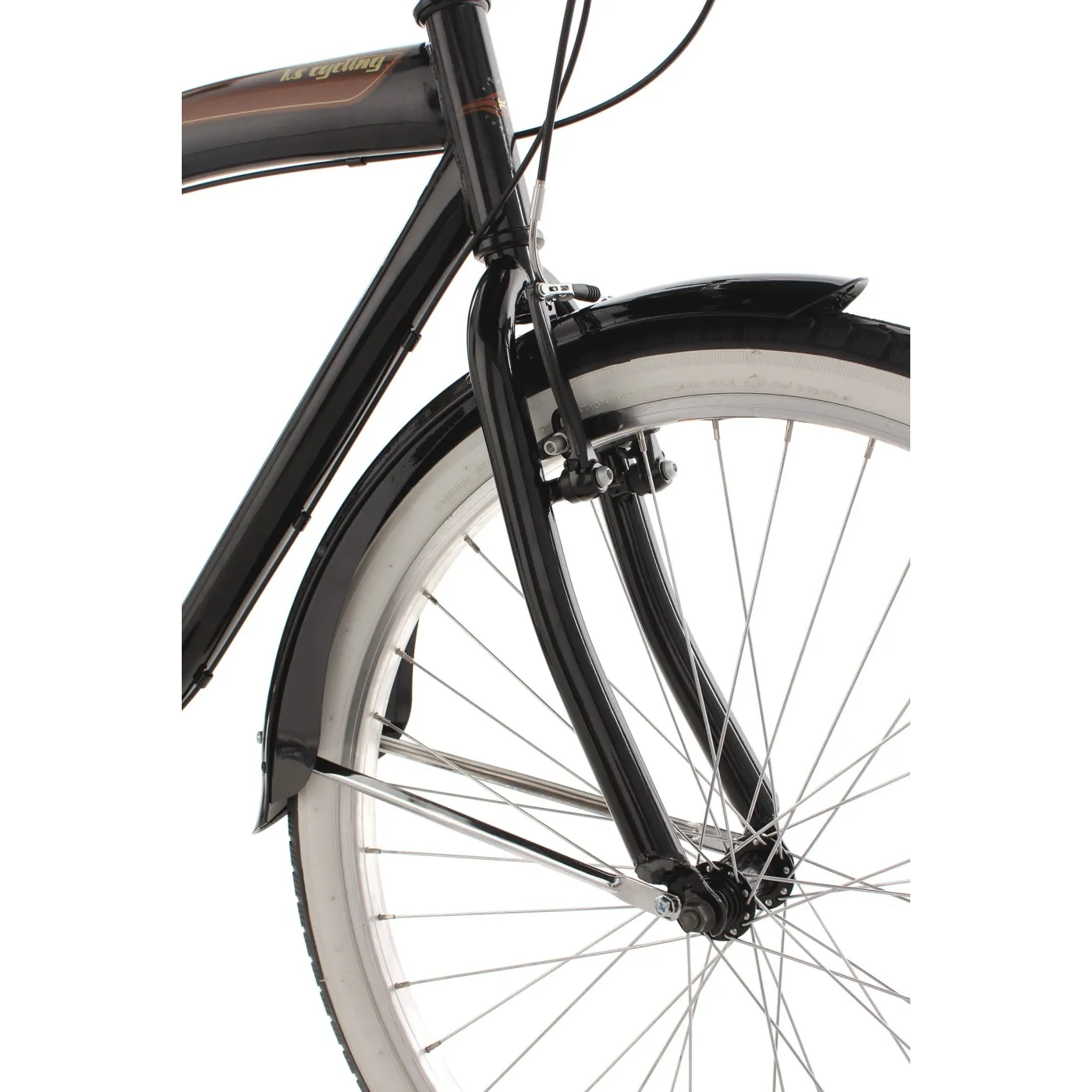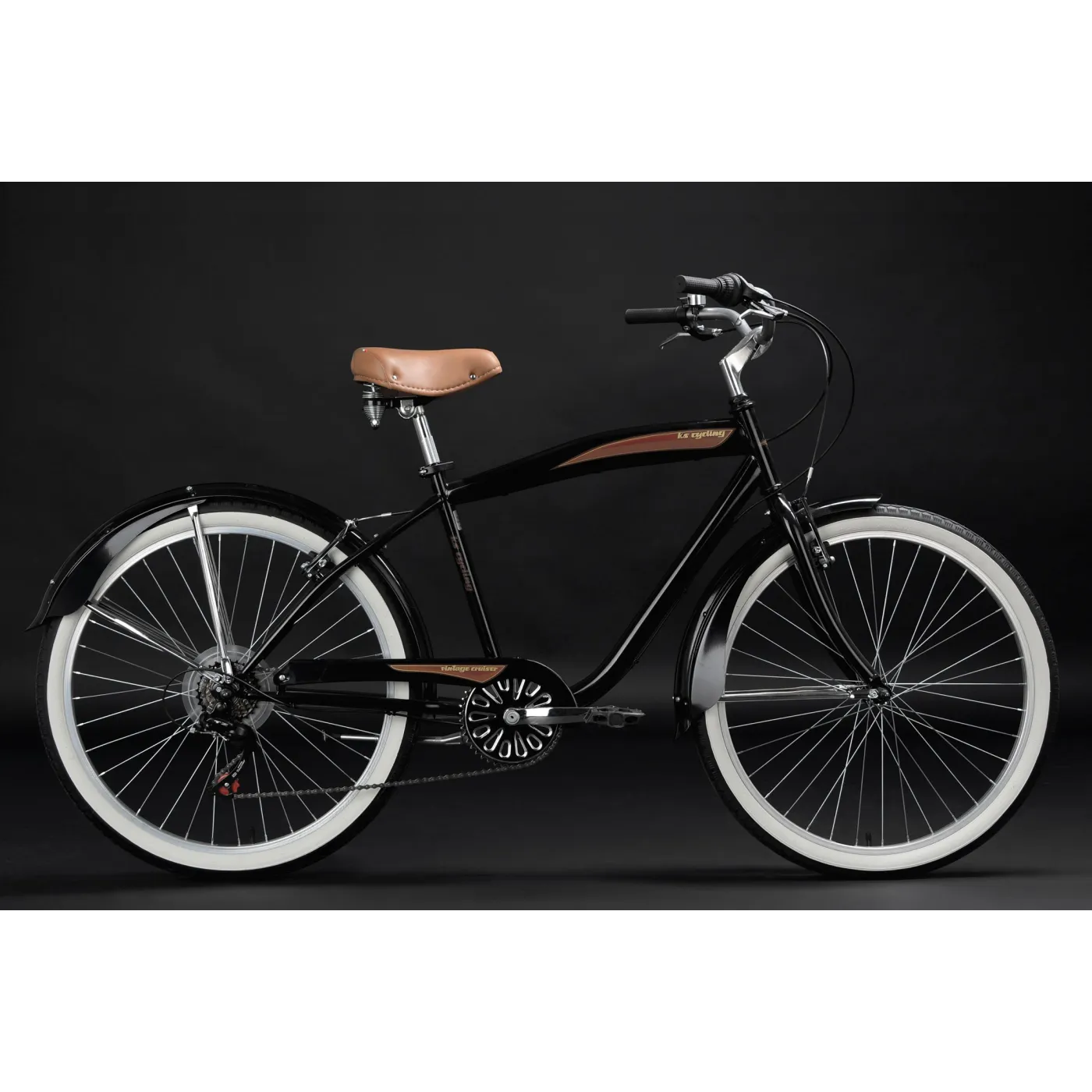 Podstawą jest stylowa czarna rama z bardzo szeroką górną rurą oraz brązowe dodatki w stylu retro. Wyposażony w 6-biegową przerzutkę SHIMANO, intuicyjną obrotową manetkę i sprężynowe siodełko daje czysty komfort jazdy. Świetnie nadaje się w szczególności do jazdy po mieście, gdyż jest nie tylko stylowy, ale także niezwykle wygodny. Falista rama, szeroka kierownica i wyjątkowe detale wyróżniają go wśród pozostałych miejskich jednośladów. Jego prostota i niepowtarzalny design sprawią, że pokochasz go od pierwszego wejrzenia.