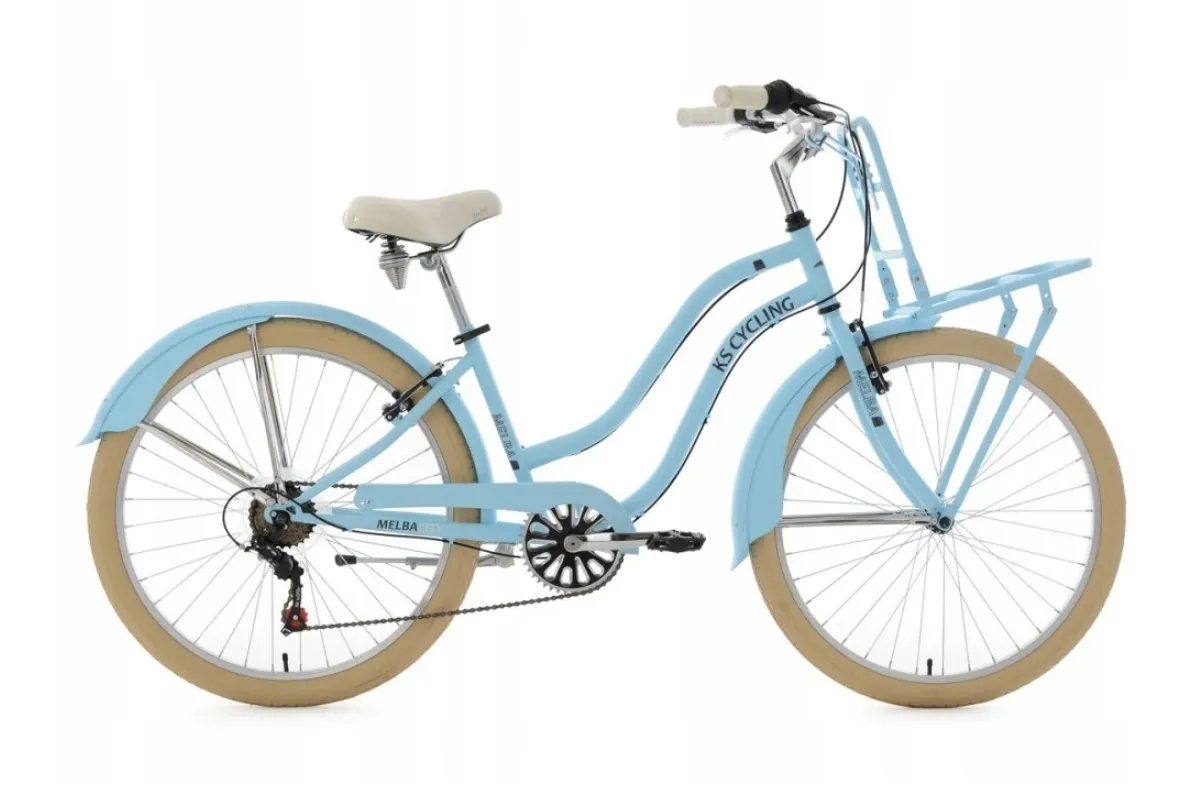 Elegancki Beach Cruiser, nie tylko na plażę! Rower o pięknej błękitnej ramie, ze stabilnym bagażnikiem i stylowym designem sprawia, że nikt nie przejdzie obok niego obojętnie. Oprócz wyglądu jego zaletą jest także 6 biegów marki Shimano, hamulce V-Brake, 26-calowe koła oraz dzwonek.Melba świetnie sprawdzi się podczas wycieczek po mieście lub jako codzienny transport do pracy. Więc jeśli szukasz stylowego i funkcjonalnego roweru, który zagwarantuje Ci komfort i bezpieczeństwo - wybierz Beach Cruiser'a Melba!