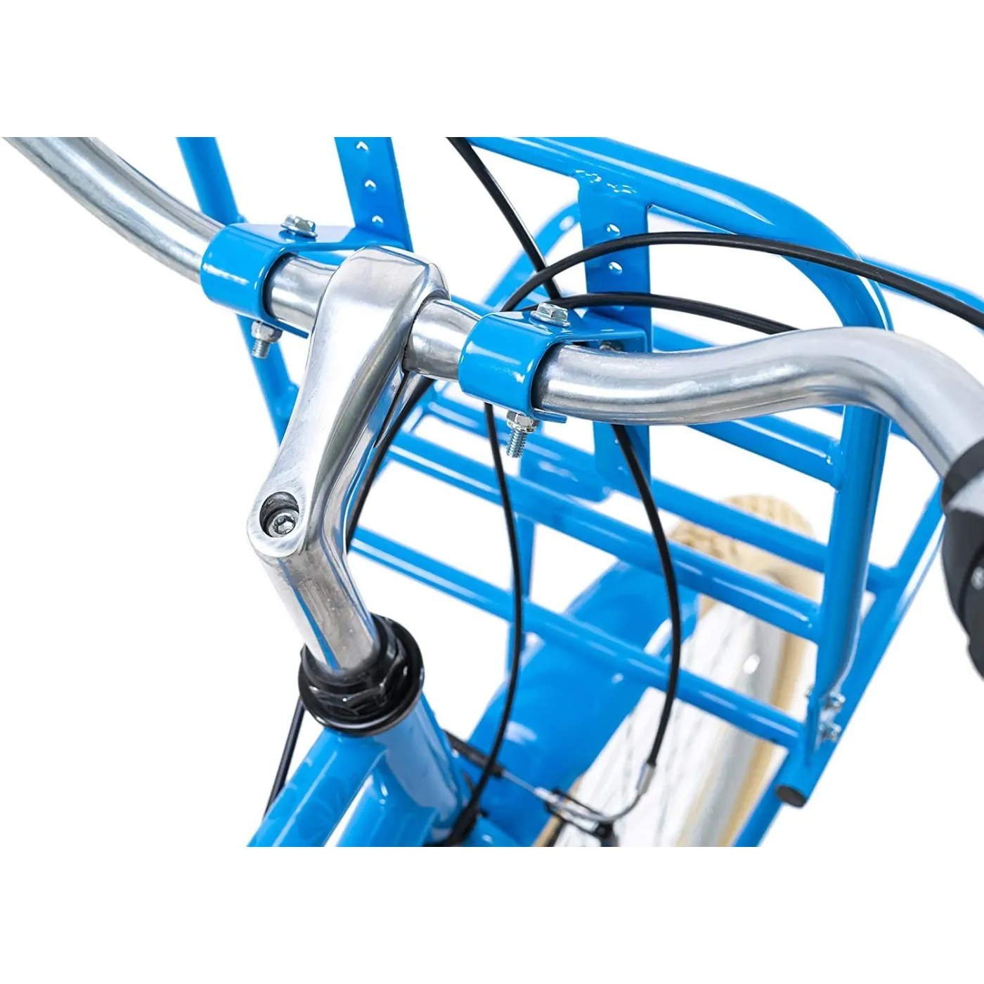 Elegancki Beach Cruiser, nie tylko na plażę! Rower o pięknej błękitnej ramie, ze stabilnym bagażnikiem i stylowym designem sprawia, że nikt nie przejdzie obok niego obojętnie. Oprócz wyglądu jego zaletą jest także 6 biegów marki Shimano, hamulce V-Brake, 26-calowe koła oraz akcesoria. Rower świetnie sprawdzi się podczas wycieczek po mieście lub jako codzienny transport do pracy. Więc jeśli szukasz stylowego i funkcjonalnego roweru, który zagwarantuje Ci komfort i bezpieczeństwo - wybierz Beach Cruiser'a Kahuna!