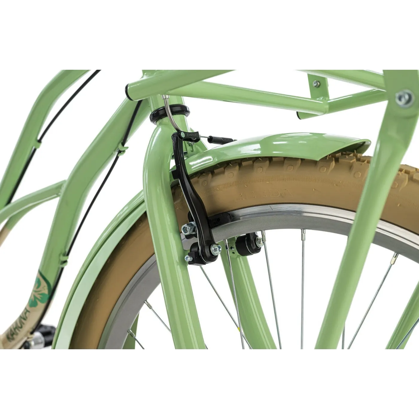 Kahuna to połączenie hawajskiego stylu z atrakcyjnymi funkcjami technicznymi i komfortem jazdy w każdej sytuacji. 6-biegowa przerzutka, hamulce V-Brake oraz przedni bagażnik zapewniający wygodny transport potrzebnych Nam rzeczy. Świetnie sprawdzi się podczas wycieczek po mieście lub jako codzienny transport do pracy. Jeśli szukasz stylowego i funkcjonalnego roweru, który zagwarantuje Ci komfort i bezpieczeństwo - wybierz Beach Cruiser'a Kahuna!