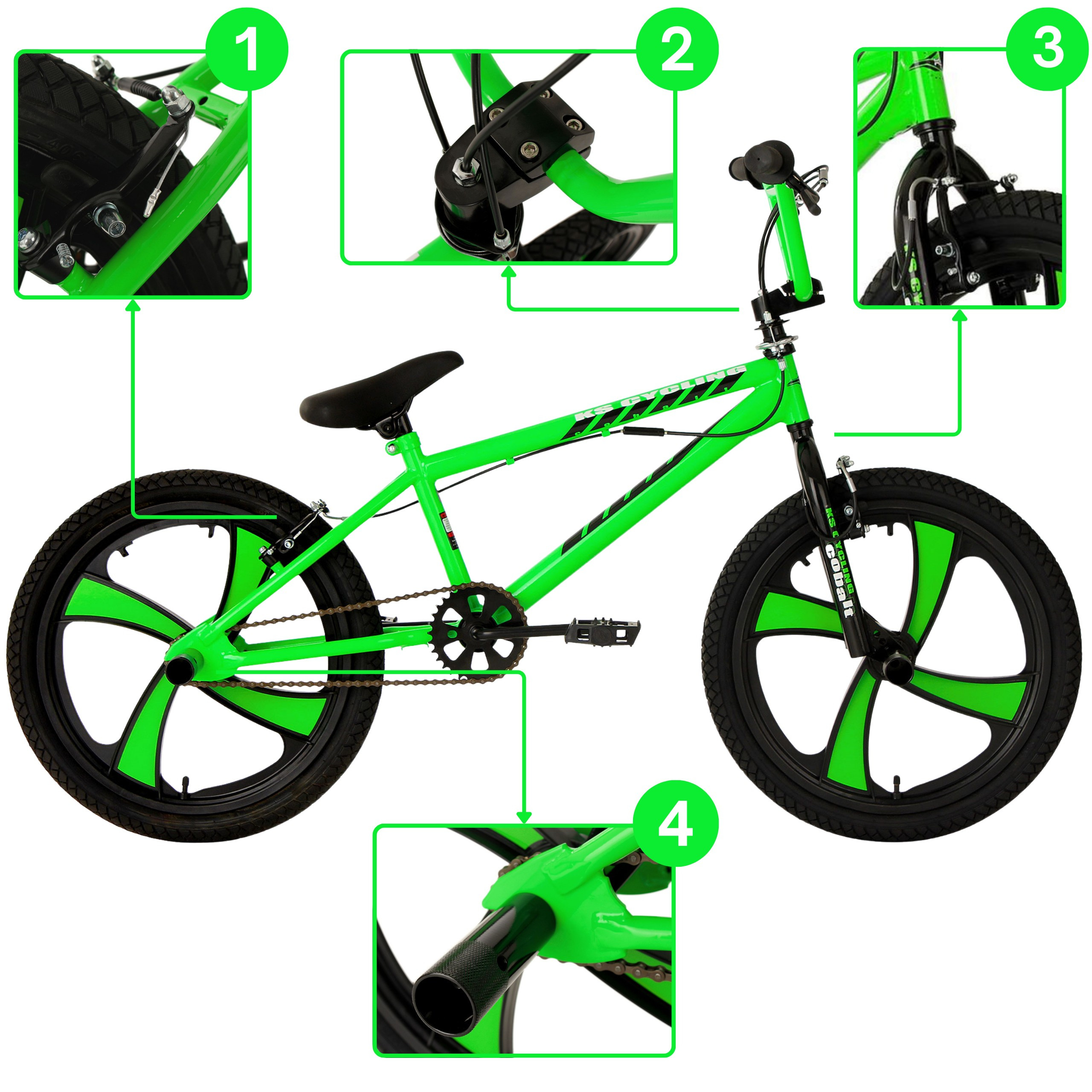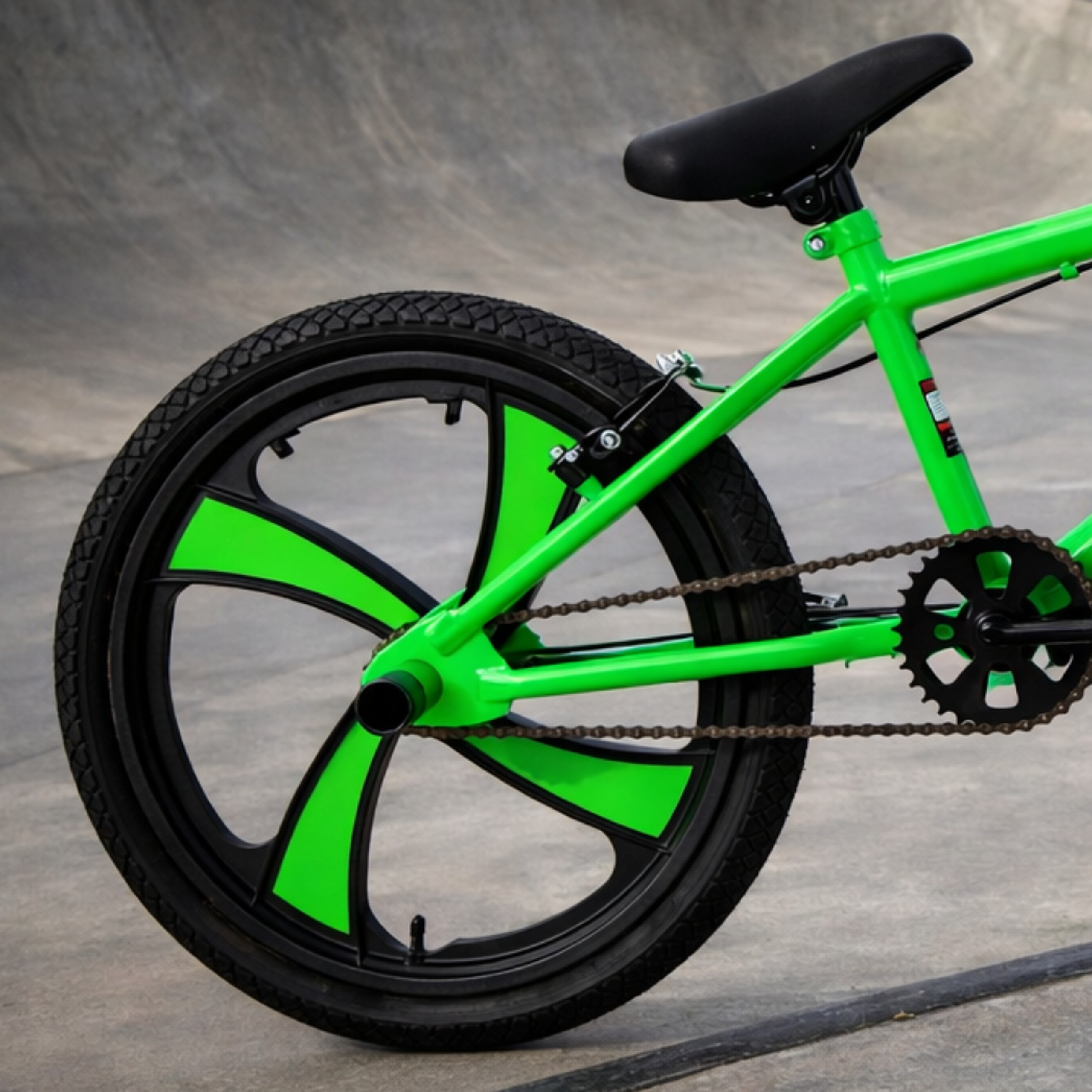 Dzięki mocnej konstrukcji felg Mag rower prezentuje się efektownie, a jednocześnie oferuje pewność i trwałość, której oczekujesz od solidnego BMX-a.