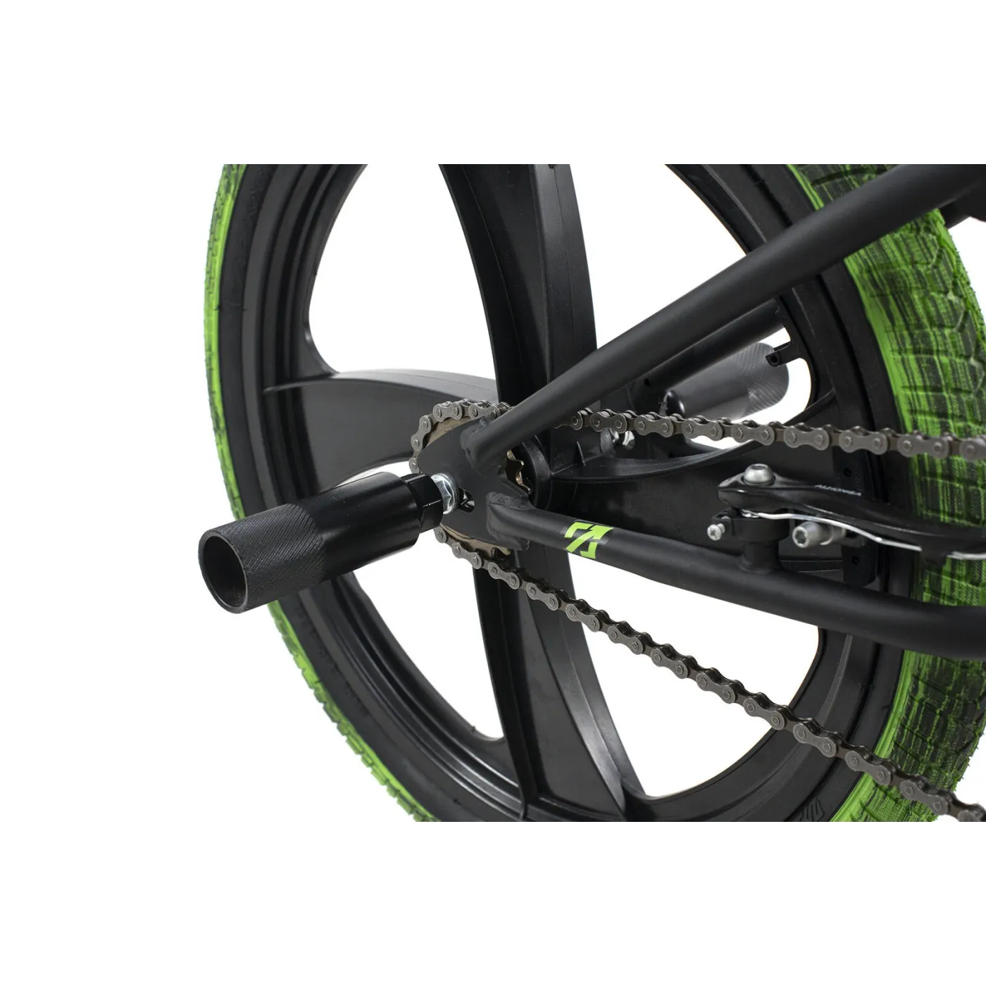Wyjątkowy rower Crusher od Ks Cycling zachwyca solidnością i wykonaniem. Rower jest atrakcyjny dzięki czarnej ramie, która świetnie współgra z mocno zielonymi dodatkami. BMX posiada kierownicę, która obraca się o 360 stopni (rotor), a także jest wyposażony w hamulce V-brake oraz 4 pegi - dlatego idealnie sprawdzi się na pumptrucku lub skateparku podczas wykonywania tricków!