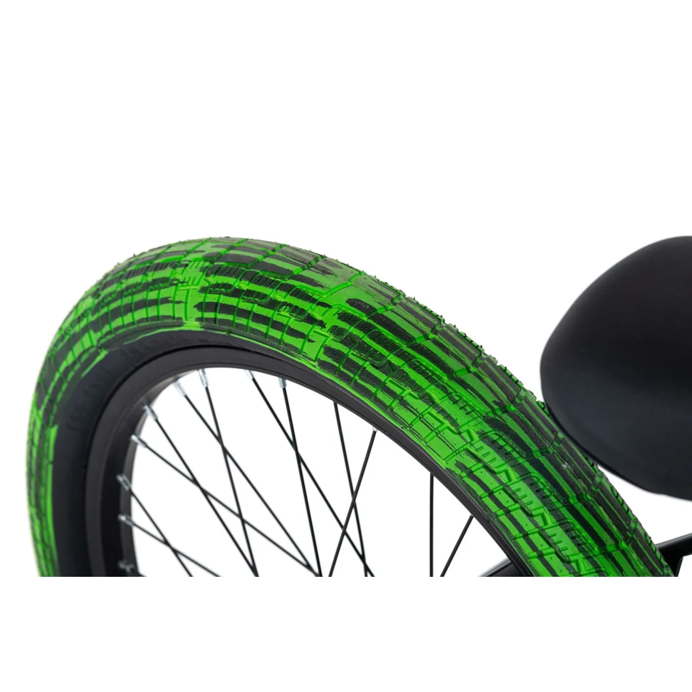 BMX Circles zachwyca swobodnym designem - czarna rama z kolorowymi detalami naprawdę przyciąga wzrok! Punktem kulminacyjnym są oczywiście grube opony typu Muddy. Każda opona jest absolutnie wyjątkowa: malowanie zostało naniesione na każdy egzemplarz ręcznie i nie znajdziesz dwóch takich samych opon! Dodatkowo z rotorem 360°, kołkami i pedałami platformowymi, rower ma wszystko, czego potrzebujesz.