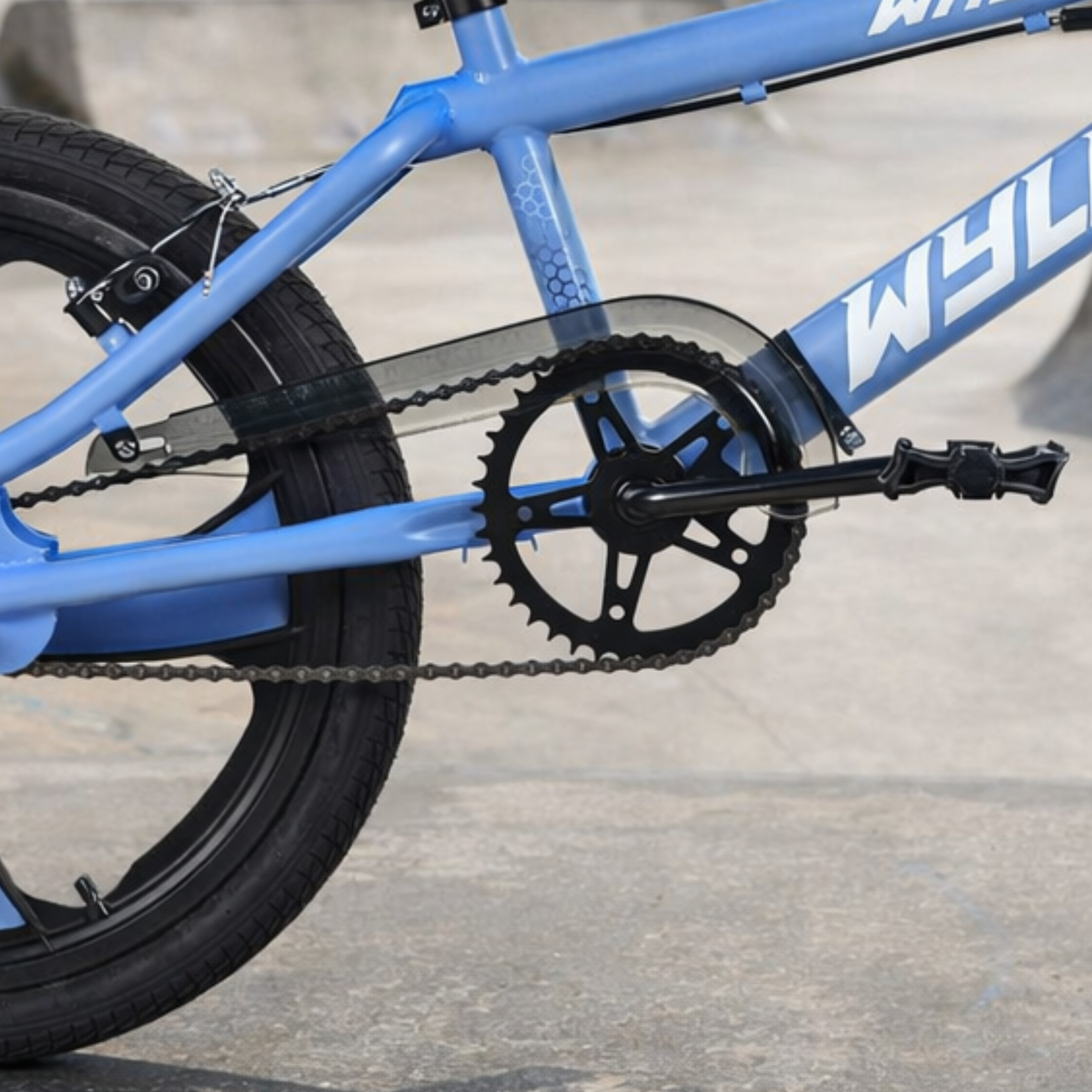 Rower BMX KS Cycling WYLD WALLEY został wyposażony w praktyczną osłonę łańcucha, która zwiększa bezpieczeństwo podczas jazdy oraz wykonywania freestyle’owych ewolucji.