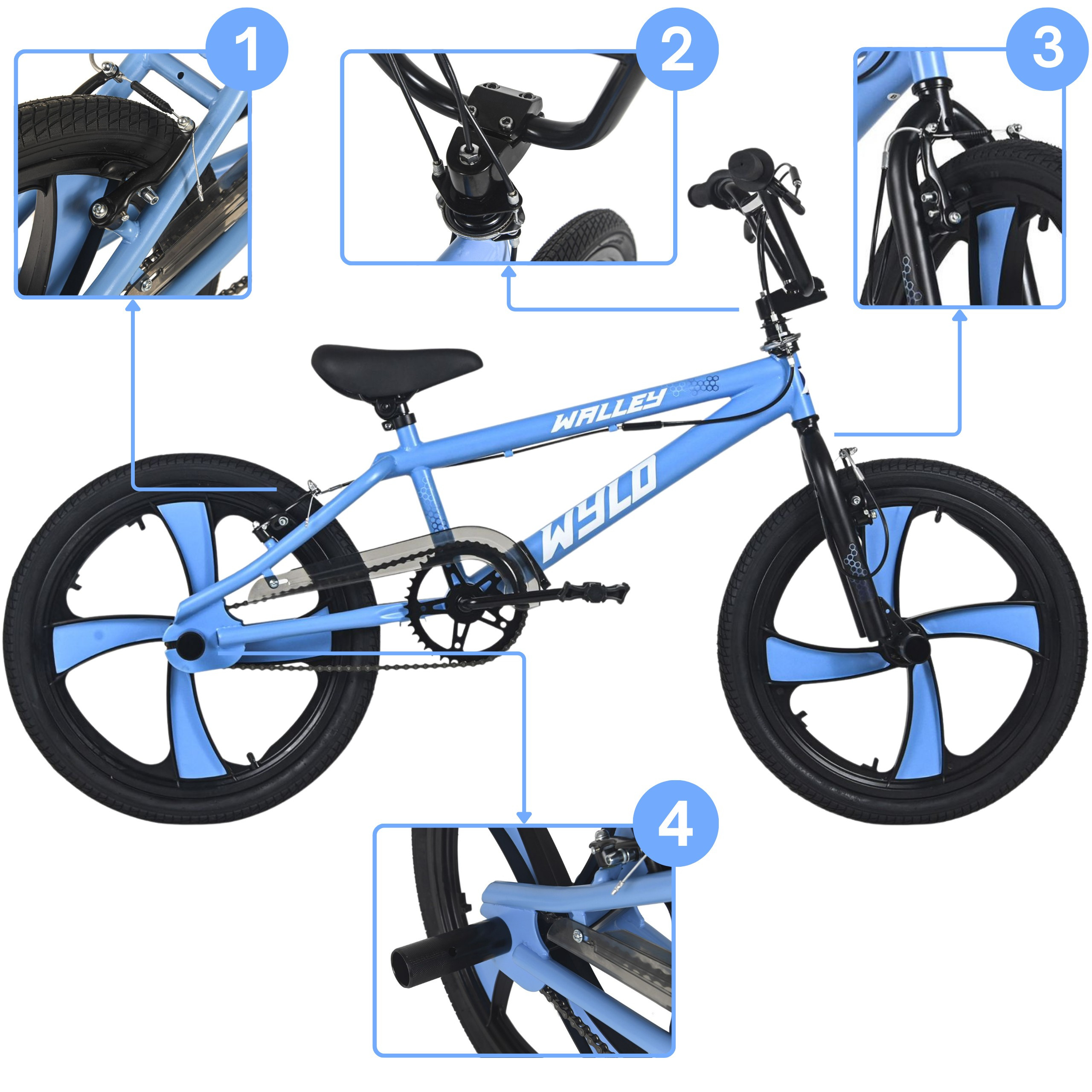 4️⃣ 4 pegi w zestawie - dodatkowe akcesoria umożliwiają wykonywanie trików i jazdę w stylu BMX, zwiększając funkcjonalność roweru.