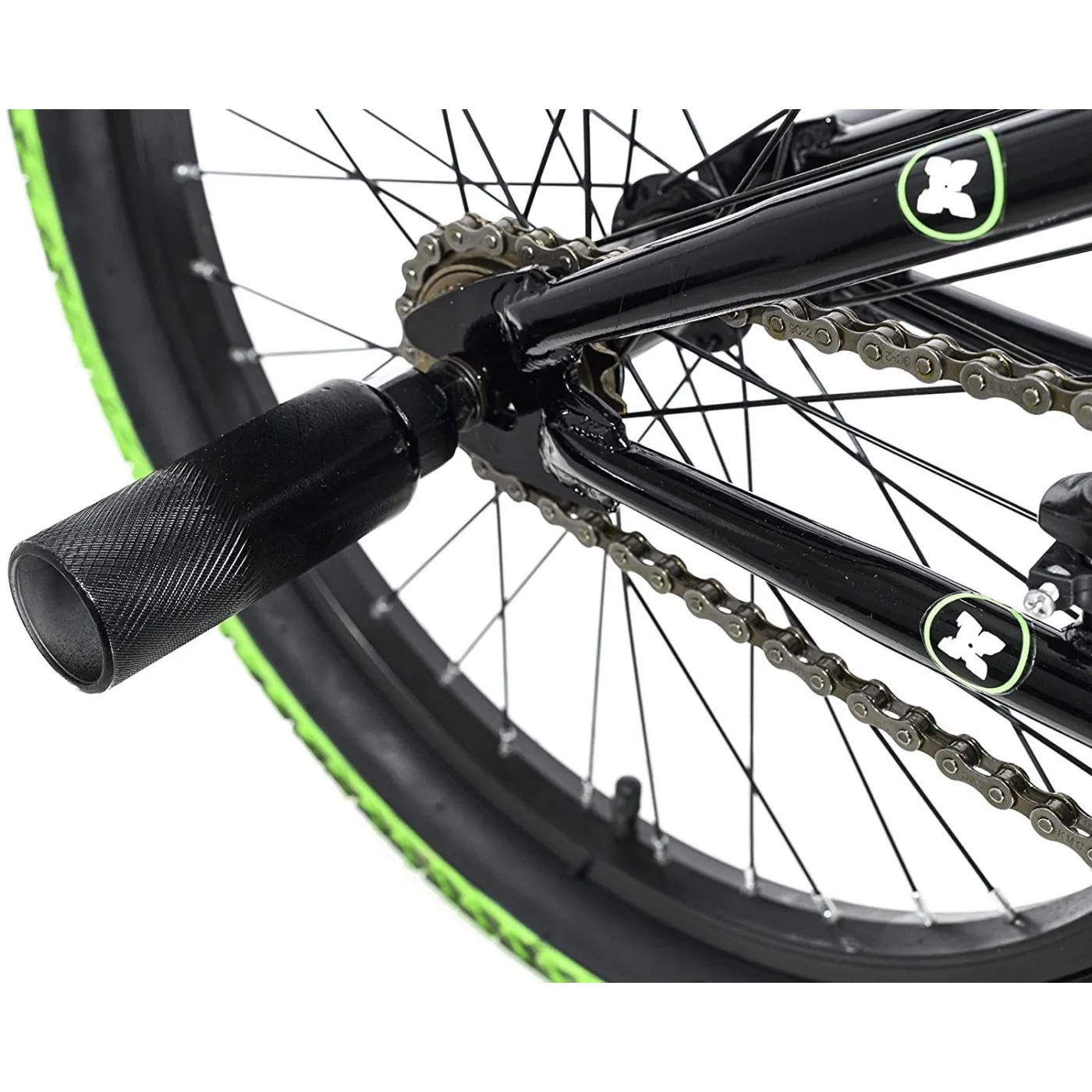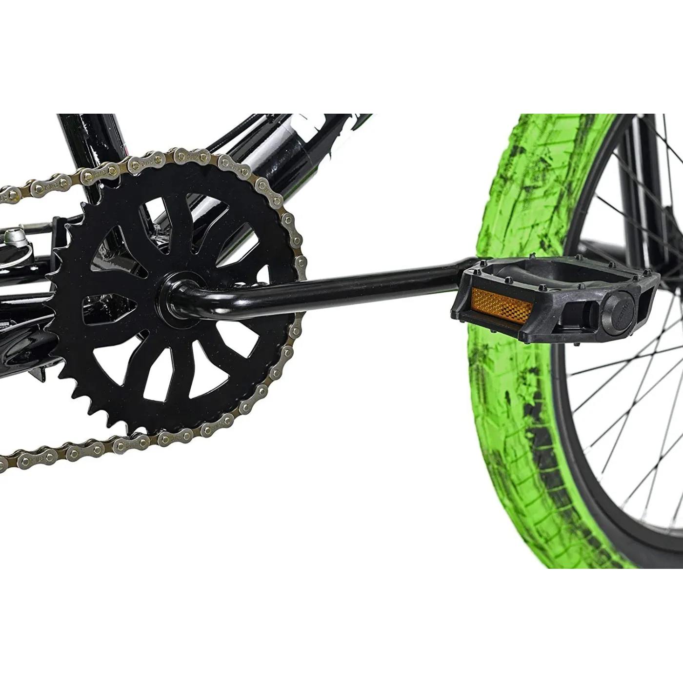 BMX zachwyca swobodnym designem - czarna rama przyciąga wzrok dzięki kolorowym detalom. Absolutną atrakcją są oczywiście opony z dodatkowym kolorem, które przyciągają uwagę wszystkich. Każda opona jest absolutnie wyjątkowa: malowanie zostało nałożone ręcznie na każdą próbkę i nie znajdziesz dwóch takich samych opon. Wyposażenie roweru BMX jest również doskonałe: dzięki rotorowi 360 °, pegom i pedałom platformowym rower ma wszystko, czego potrzebujesz jako początkujący rowerzysta BMX.