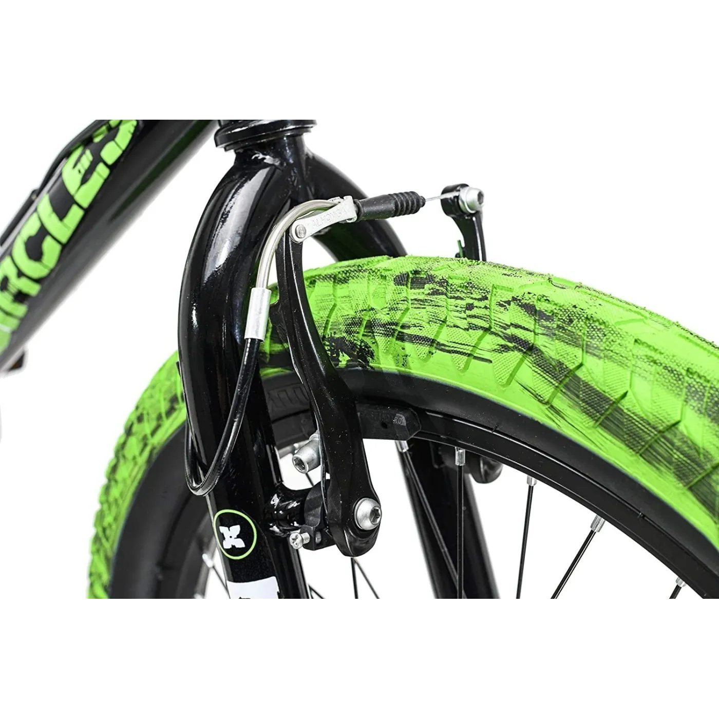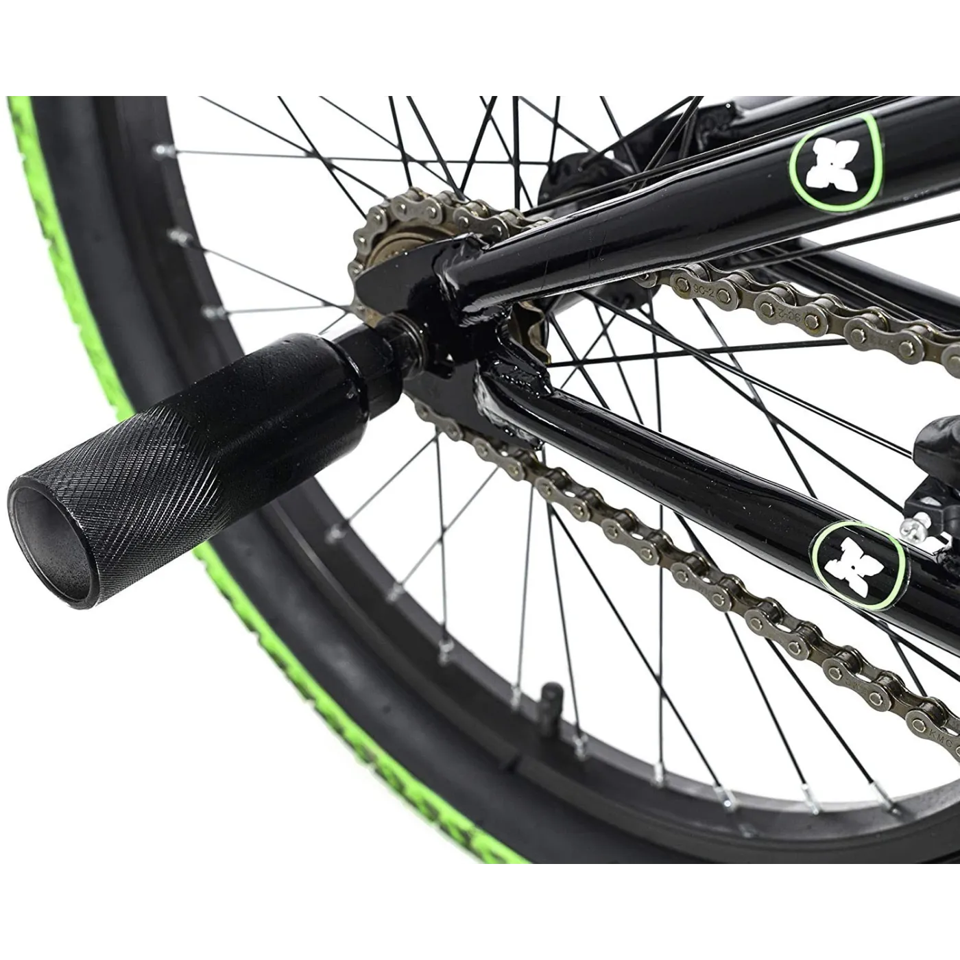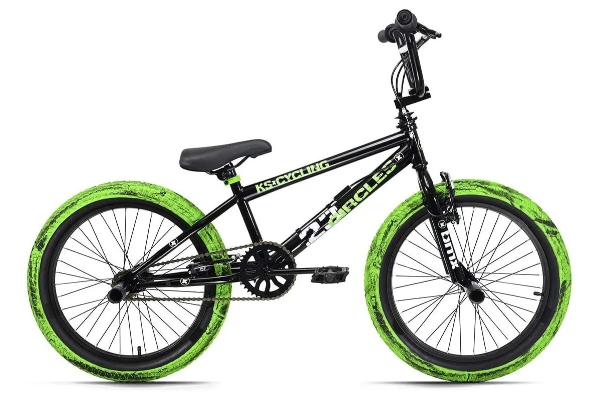 BMX zachwyca swobodnym designem - czarna rama przyciąga wzrok dzięki kolorowym detalom. Wyposażenie roweru BMX jest również doskonałe: dzięki rotorowi 360 °, pegom i pedałom platformowym rower ma wszystko, czego potrzebujesz jako początkujący rowerzysta BMX.