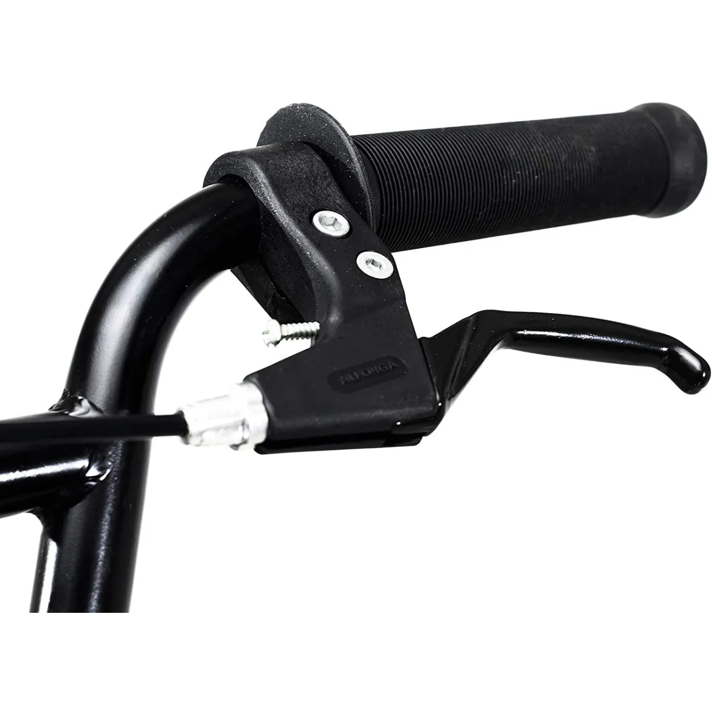 BMX zachwyca swobodnym designem - czarna rama przyciąga wzrok dzięki kolorowym detalom. Absolutną atrakcją są oczywiście opony z dodatkowym kolorem, które przyciągają uwagę wszystkich. Każda opona jest absolutnie wyjątkowa: malowanie zostało nałożone ręcznie na każdą próbkę i nie znajdziesz dwóch takich samych opon. Wyposażenie roweru BMX jest również doskonałe: dzięki rotorowi 360°,pegom i pedałom platformowym rower ma wszystko, czego potrzebujesz jako początkujący rowerzysta BMX.