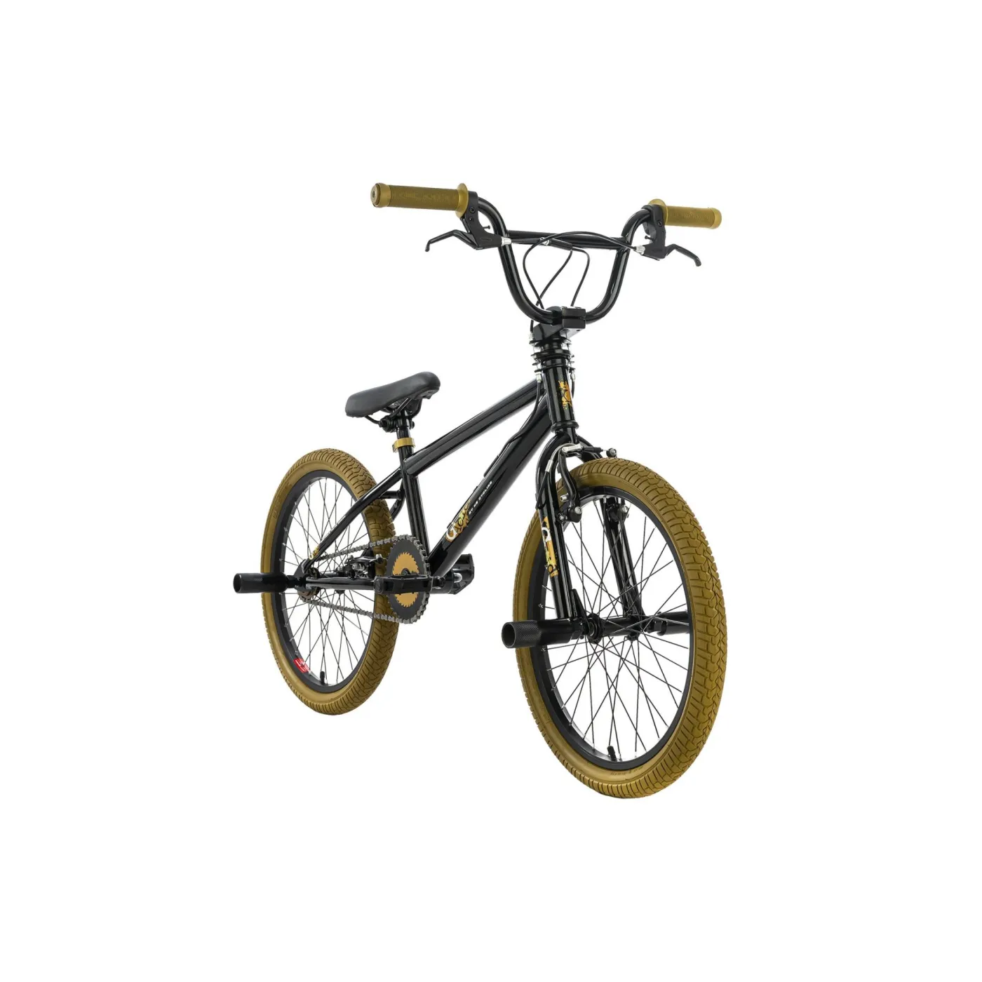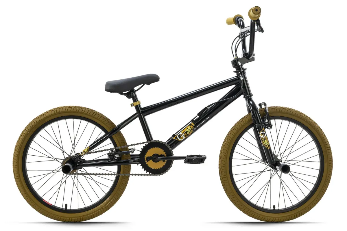 To rower z kontrastowym designem, który zapewnia doskonały wygląd: G-Acid łączy całkowicie czarną ramę z kolorowymi detalami i oponami. Ten BMX przekonuje nie tylko atrakcyjnym wyglądem, ale także stabilnymi częściami, takimi jak mostek Ahead. Oczywiście rower wyposażony jest w rotor 360°, który umożliwia pełny obrót kierownicy i ułatwia wykonywanie akrobacji. W zestawie znajdują się cztery stalowe kołki do trików i innych, a hamowanie odbywa się za pomocą hamulców V-brake.
