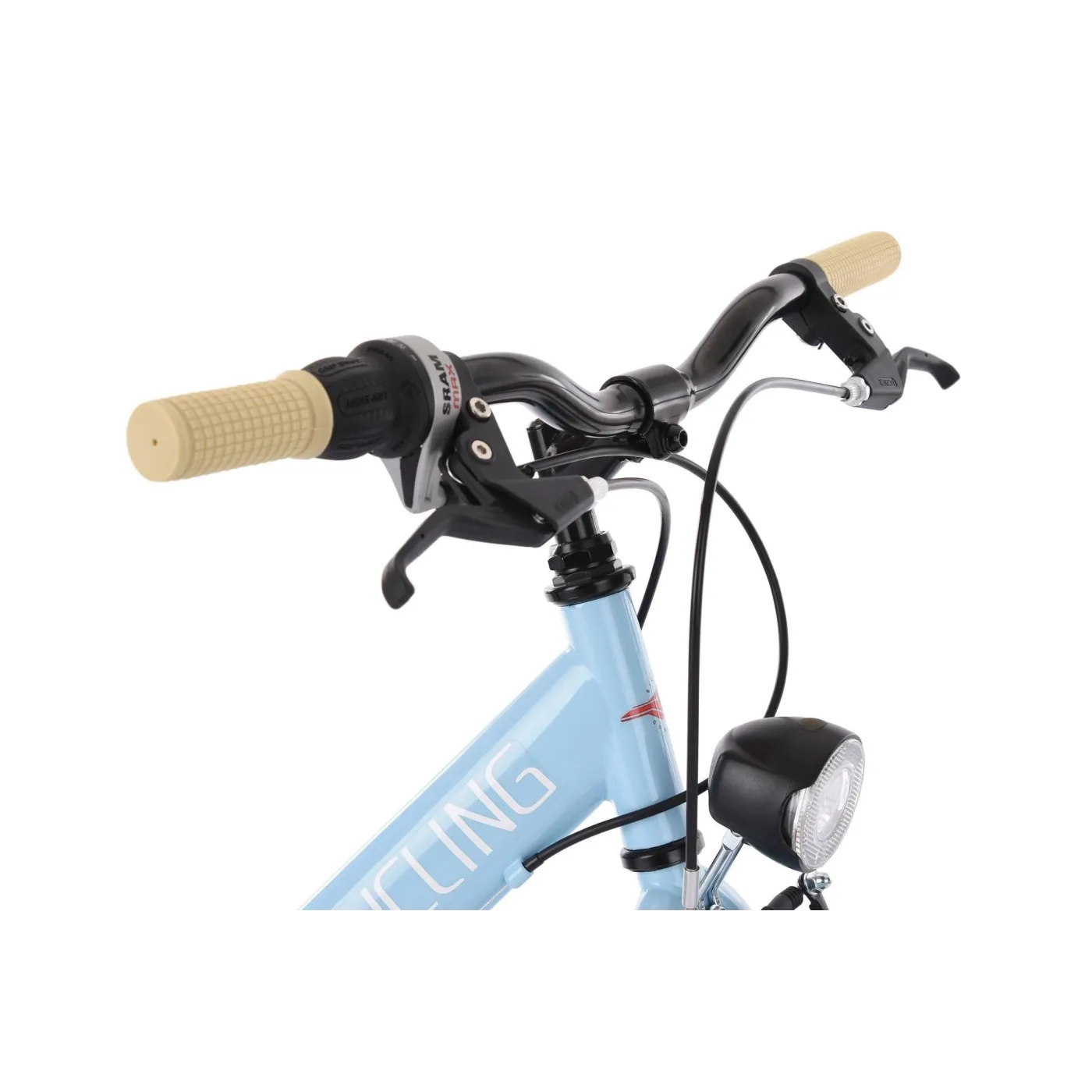 Toscana to idealny towarzysz na każdy dzień dla każdej dziewczynki! Świetnie sprawdzi się do szkoły lub na wycieczki, między innymi dzięki bagażnikowi, na którym można przewieźć plecak, torbę lub inne przydatne rzeczy. Ten rower zachwyca nie tylko uroczym błękitem oraz jasnymi dodatkami, ale także wyposażeniem: posiada 6 biegów oraz wygodną manetkę SRAM, a także solidną, stalową ramę i osłonę na łańcuch.