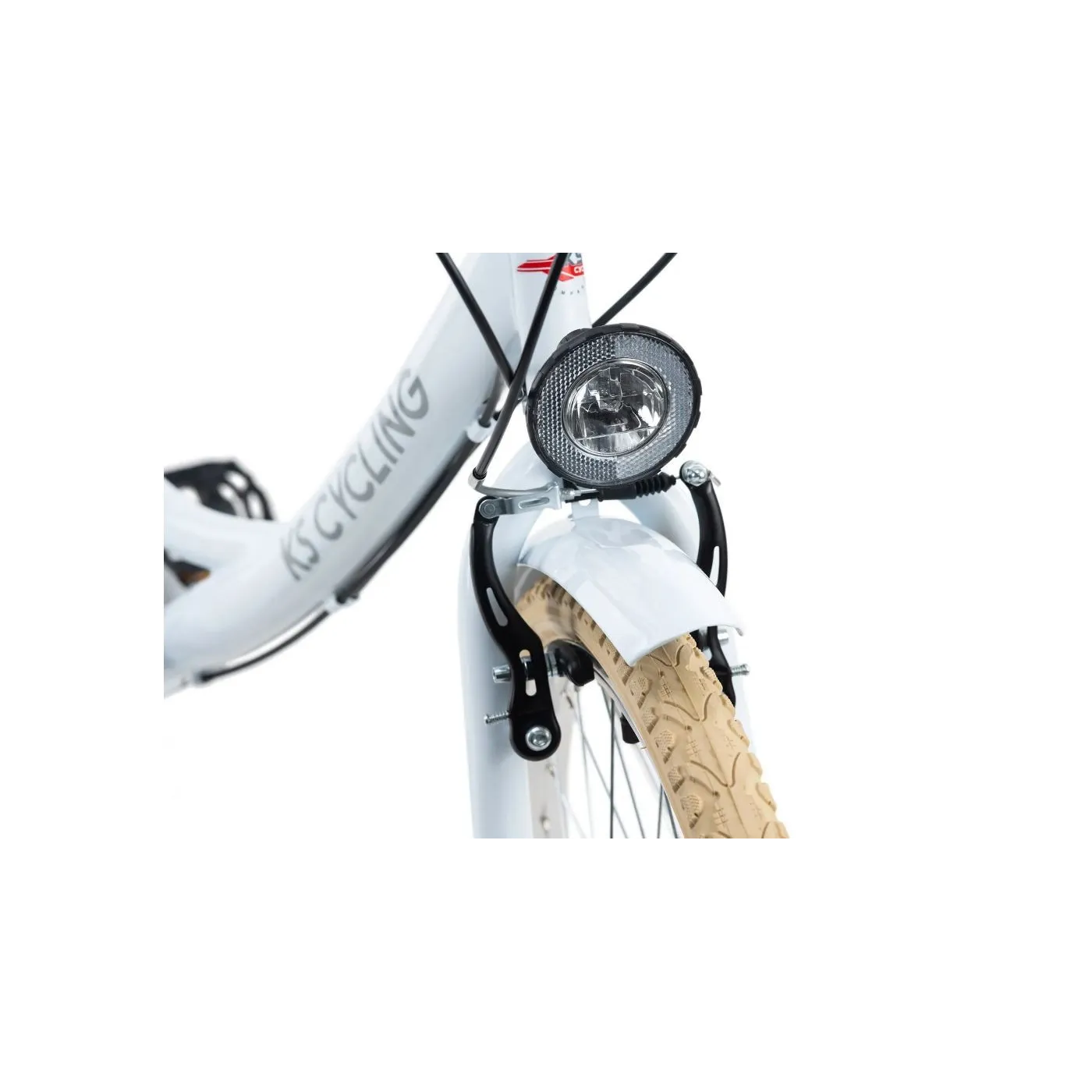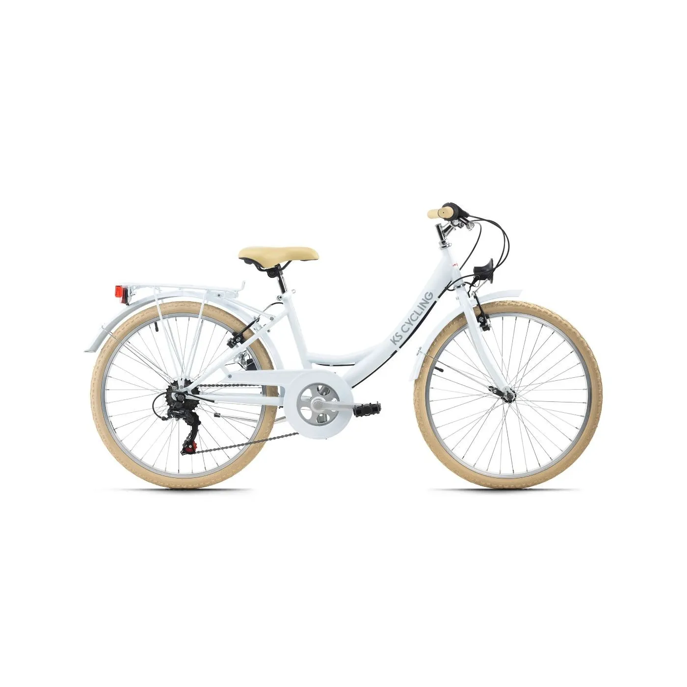 Rower dziecięcy 24" Balloon marki KS Cycling to wygodny środek transportu na każdą okazję. Biała rama nadaje mu klasycznego wyglądu. Dzięki odpowiednio zaprojektowanej osłonie spodnie ani spódniczka na pewno nie wkręcą się w łańcuch. Wygodna, lekko profilowana kierownica pozwoli dopasować odpowiednią pozycję podczas jazdy i odciąży kręgosłup.