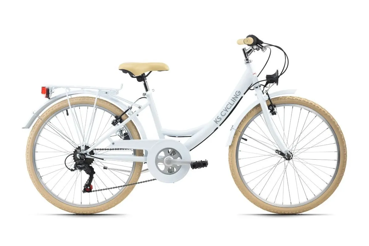 Rower dziecięcy 24″ Balloon marki KS Cycling to wygodny środek transportu na każdą okazję. Biała rama nadaje mu klasycznego wyglądu. Dzięki odpowiednio zaprojektowanej osłonie spodnie ani spódniczka na pewno nie wkręcą się w łańcuch. Wygodna, lekko profilowana kierownica pozwoli dopasować odpowiednią pozycję podczas jazdy i odciąży kręgosłup.