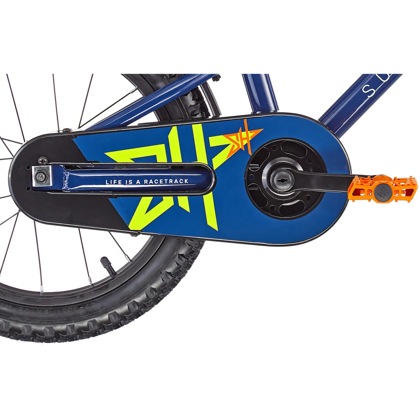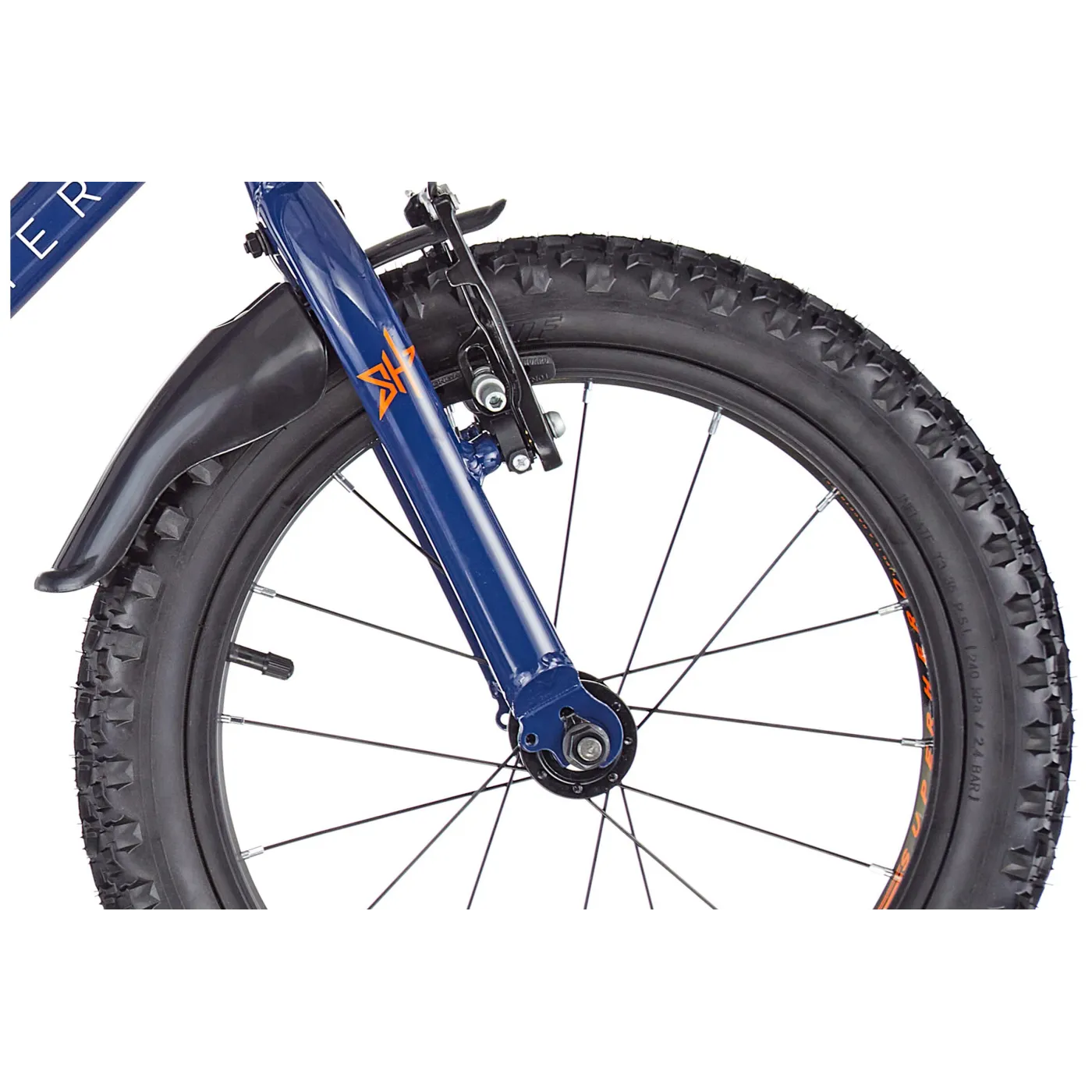 Dziecku z pewnością spodoba się ciekawa stylistyka, w której stworzono rowerek. Dopasowane błotniki, osłona łańcucha i wyraźne dodatki w postaci pomarańczowych pedałów i gripów z pewnością przypadną do gustu młodym poszukiwaczom przygód. Dzięki prostej budowie, doskonale sprawdzi się w trakcie pokonywania pomniejszych przeszkód, a aluminiowa rama zagwarantuje odpowiednią trwałość i lekkość. Profilowane siodełko sprawdzi się podczas każdej przejażdżki, a rączki z gumowym wykończeniem pozwolą wygodne ułożyć dłonie na kierownicy.