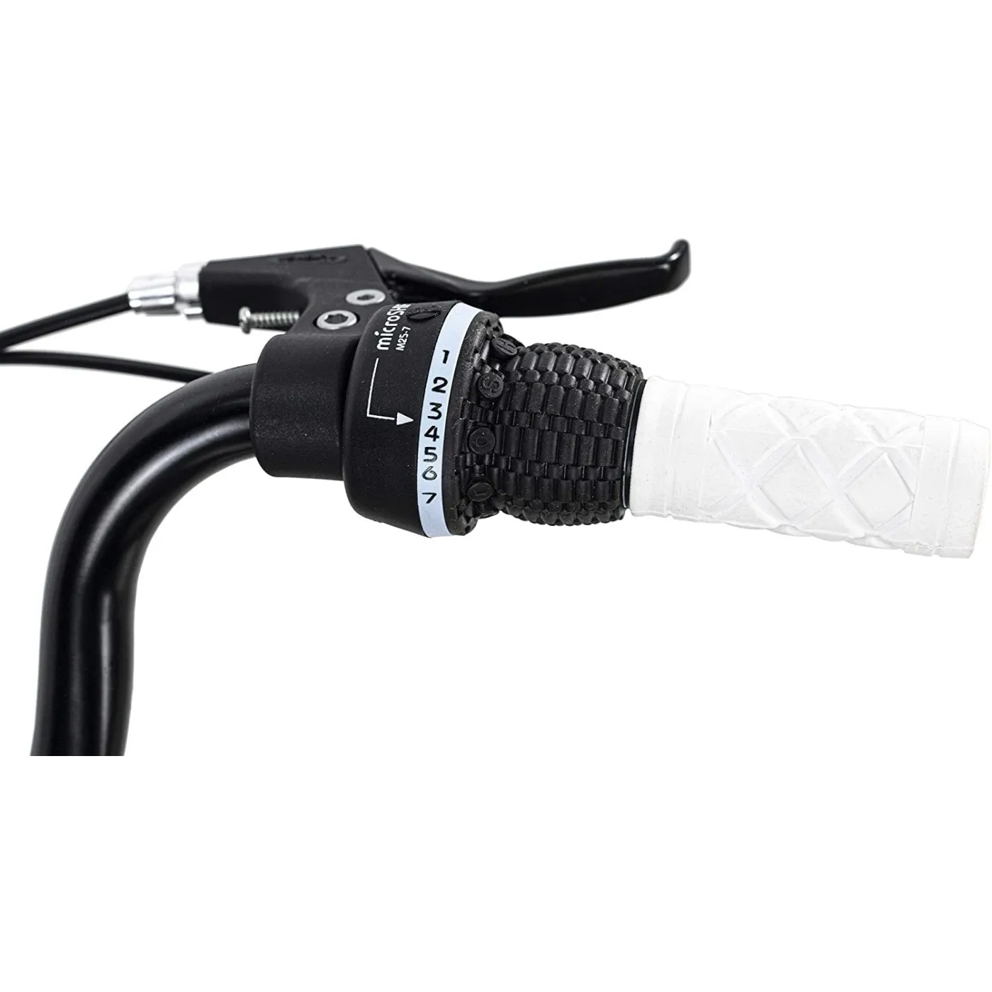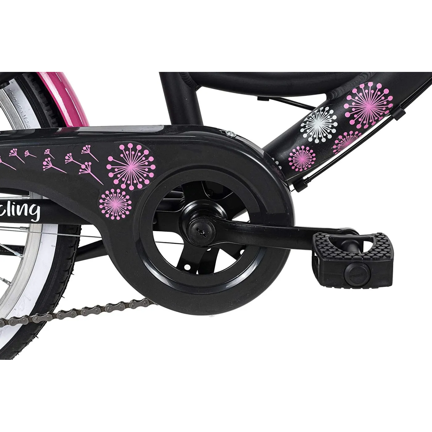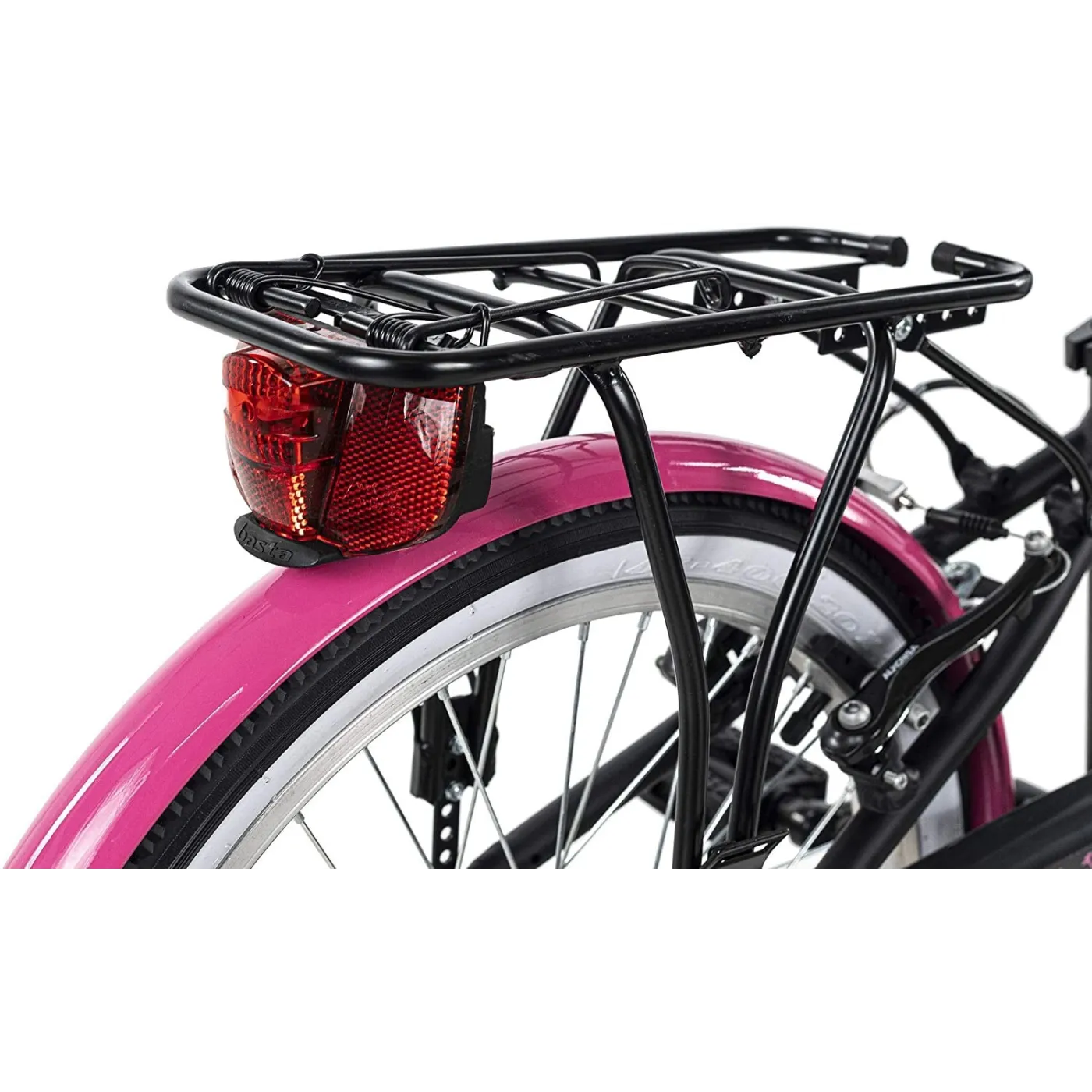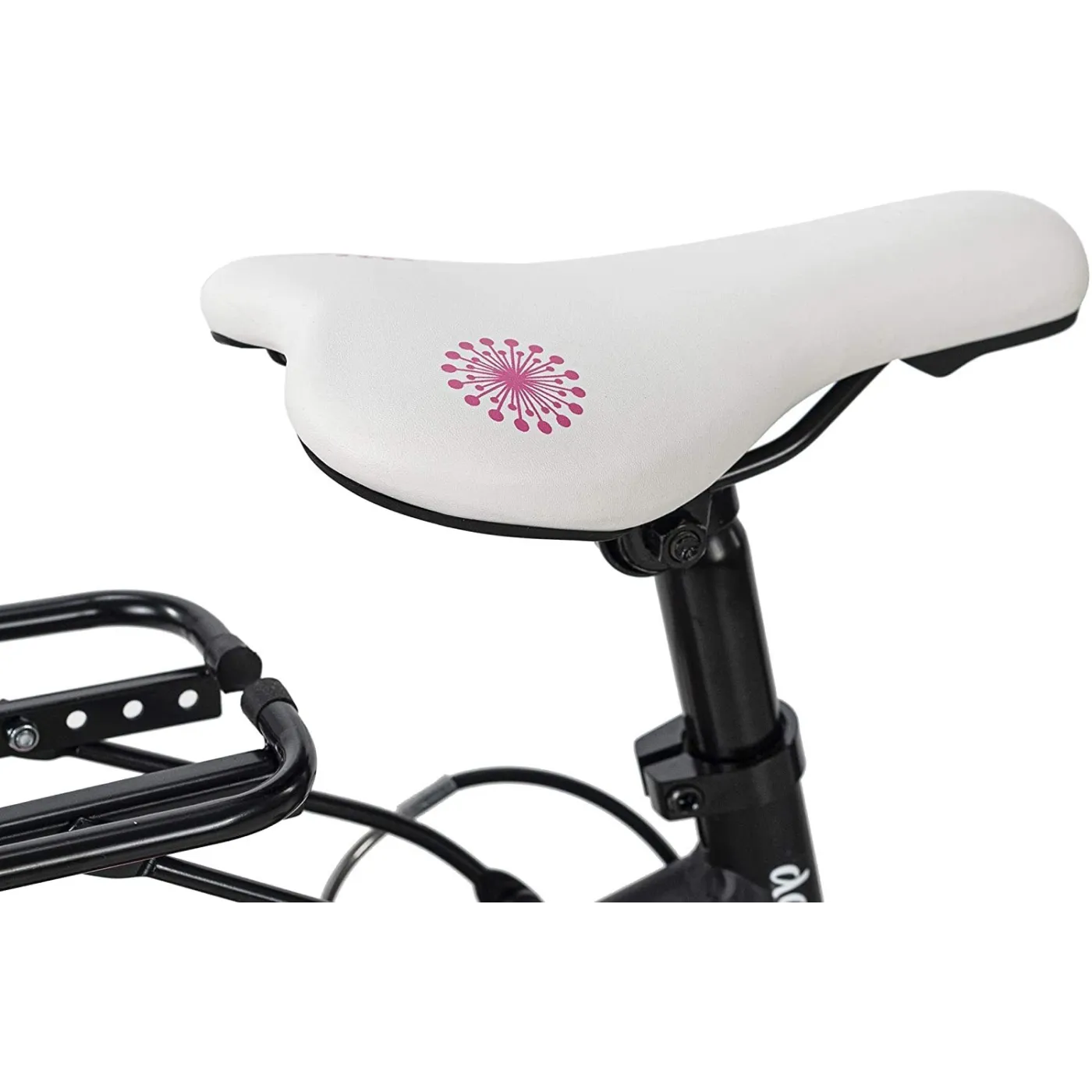 Oprócz atrakcyjnego wyglądu posiada świetne wyposażenie, które ułatwi podróże małej rowerzystce. Posiada 7 biegów, zmienianych za pomocą obrotowej manetki microShift i dwa hamulce V-brake, które zapewnią wygodną i bezpieczną jazdę. Dodatkowo rower wyposażony jest w bagażnik, osłonę łańcucha, dzwonek, oświetlenie zasilane przez dynamo, dzięki czemu jazda jest bezpieczna nawet po zmroku.
