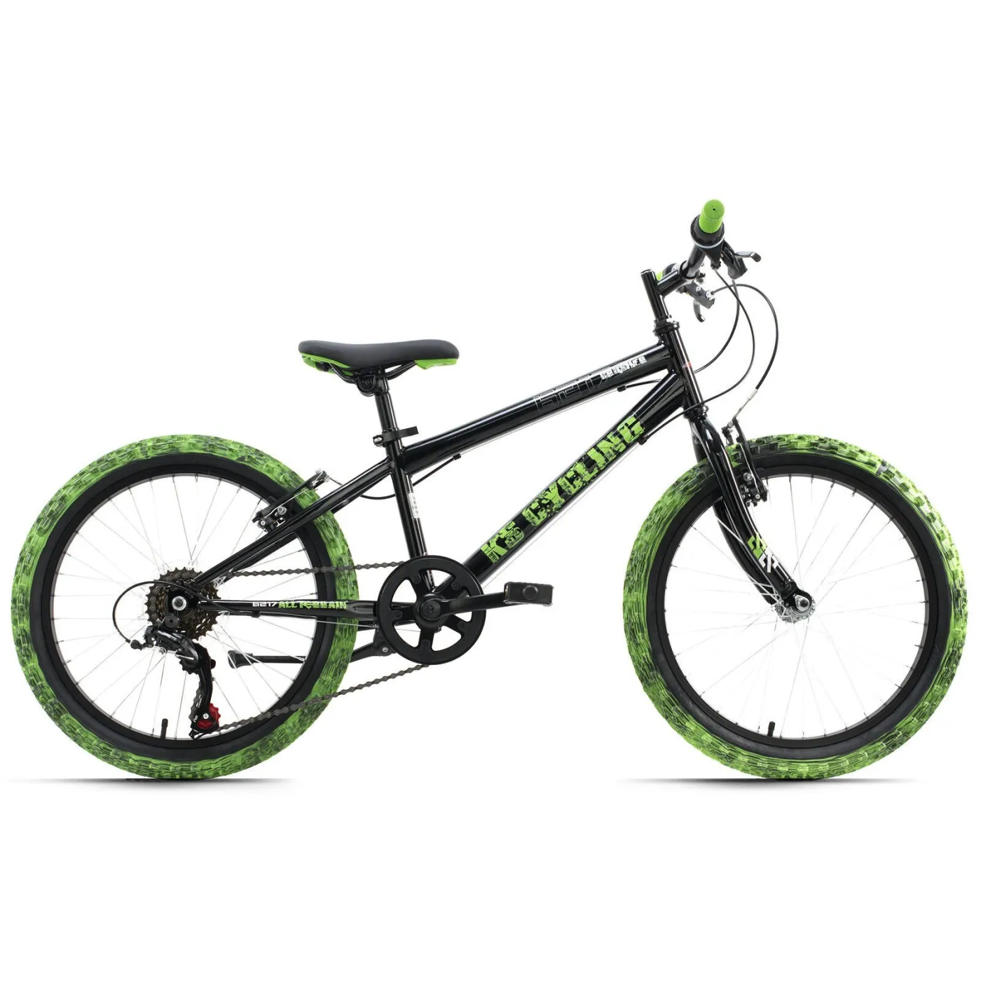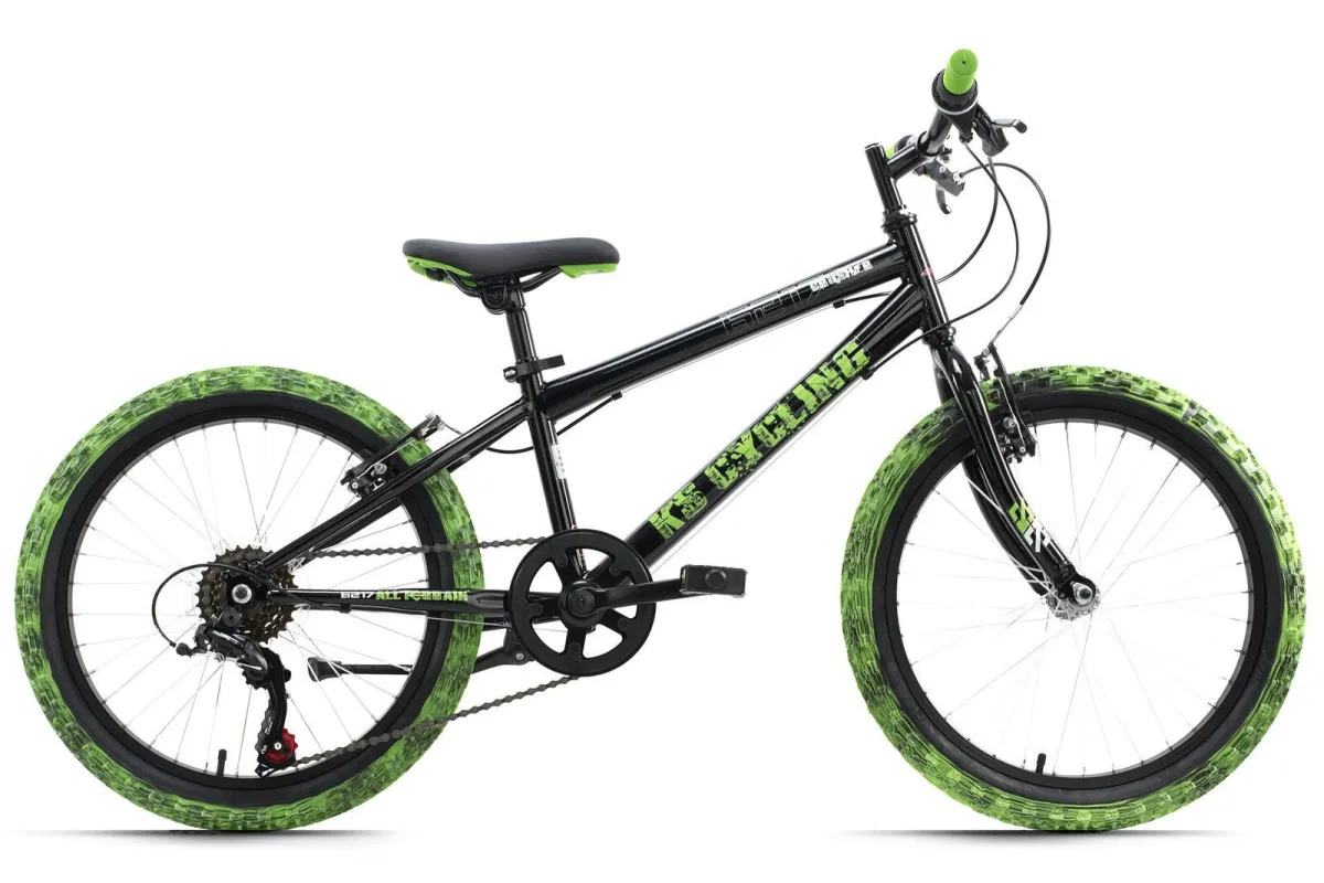 CRUSHER firmy KS Cycling to wytrzymały rower górski dla najmłodszych, który w niczym nie ustępuje wyglądowi dorosłych. Każda z opon z grubym bieżnikiem Muddy Green jest wyjątkowa, a zielono czarny wzór z specjalnymi efektami „zniszczenia” sprawia, że rower dziecięcy przyciąga wzrok. Hamulce V-brake z przodu iz tyłu zapewniają bezpieczeństwo. Rower jest również wyposażony w 6-biegową przerzutkę firmy Shimano.
