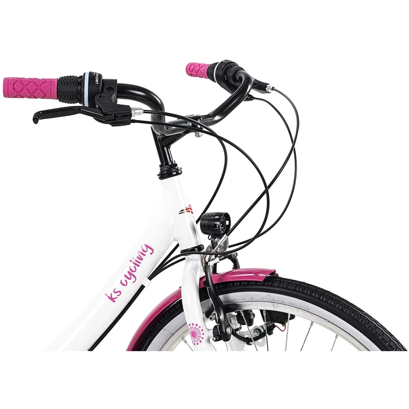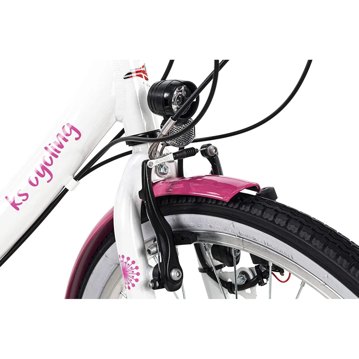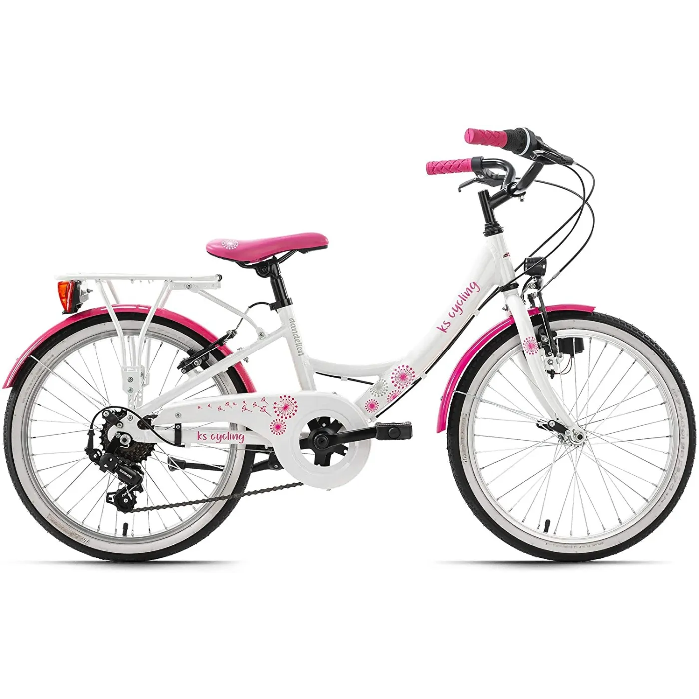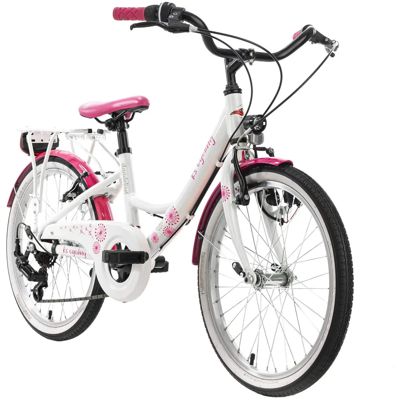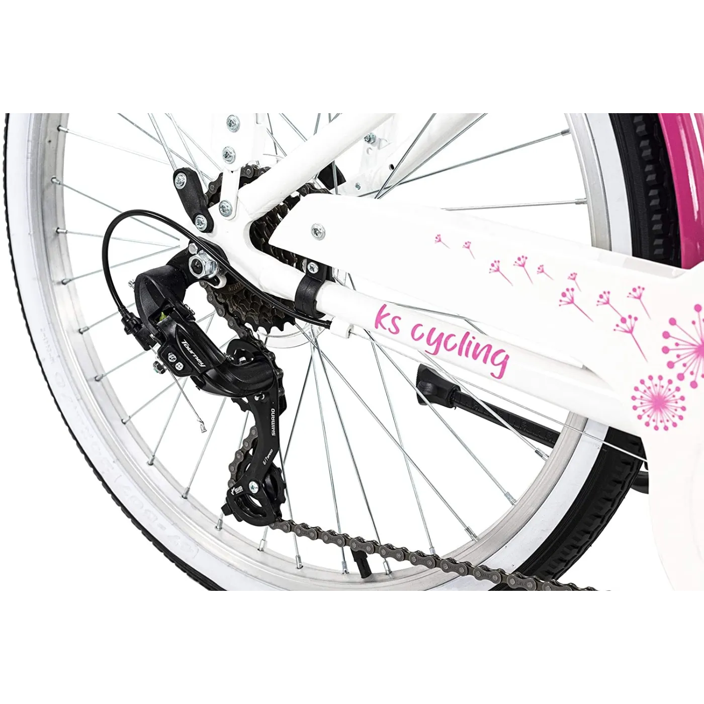 20-calowy rower Dandelion firmy KS-Cycling dla dziewczynki jest prosty, ale posiada uroczy wzór kwiatowy. Rower wyposażony jest w system oświetlenia według StVZO, dzięki czemu bezpieczna jazda jest gwarantowana nawet o zmroku. Dzięki 7-biegowej przerzutce, łatwej w obsłudze rączce obrotowej i dwóm hamulcom typu V, Twoje dziecko z łatwością przyzwyczai się do większych rowerów.