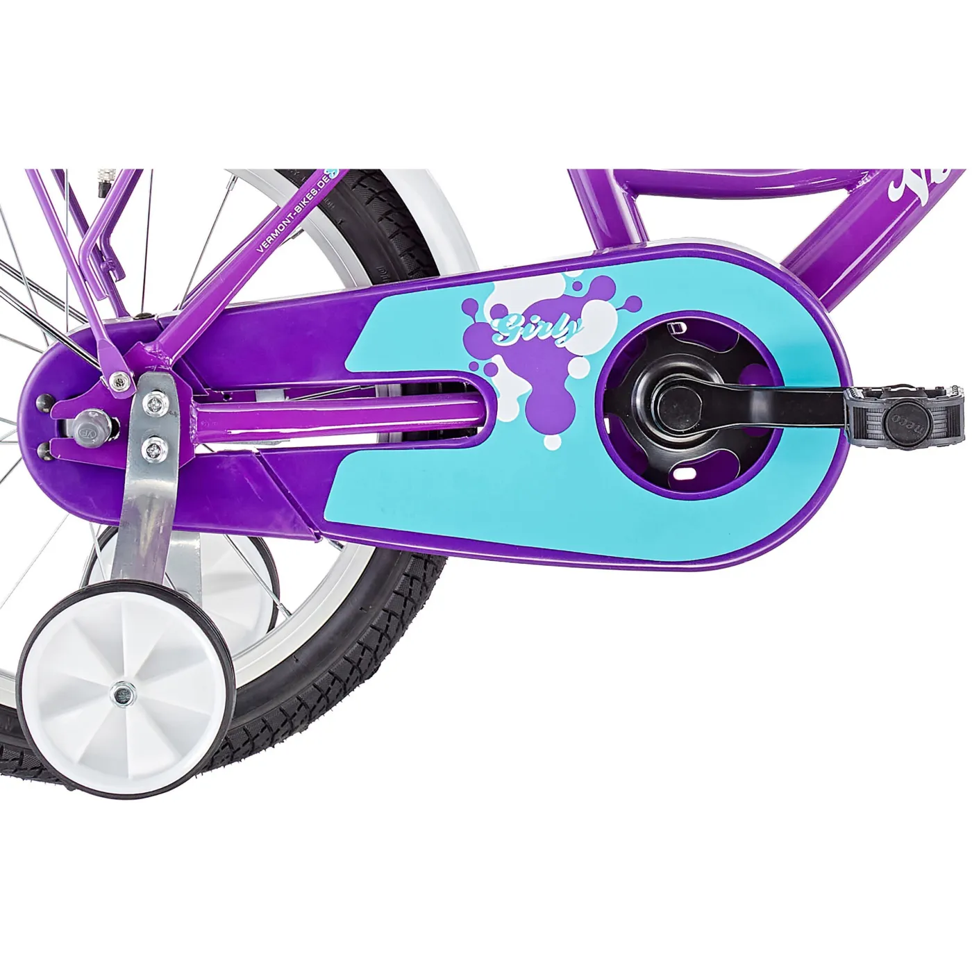 Uroczy, świetnie wyposażony, bezpieczny rowerek Girly zachwyci każdego małego kierowcę! Rower posiada wszystko, co jest potrzebne do jazdy - stabilne koła, błotniki, osłonę łańcucha, ochronę na kierownicę oraz gripy z kołnierzami dla lepszego chwytu. Idealnie nadaje się również do nauki, koła boczne dodają stabilności, a hamulec cantilever oraz kontra pozwolą powoli przyzwyczaić się zmiany sposobu hamowania nie tracąc poczucia bezpieczeństwa. Dodatkowe akcesoria takie jak duży dzwonek, koszyczek i bagażnik dopełniają całość.