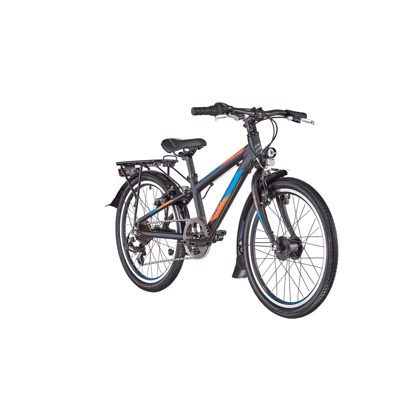 Oto on jedyny w swoim rodzaju rower, wykonany w kolorze czarnym, z pomarańczowymi i niebieskimi detalami, który zaskakuje i daje niesamowity efekt wizualny! Nie jedna osoba pozazdrości takiego sprzętu. Jego lekka aluminiowa rama jest wyposażona w solidne komponenty i przyjazną dzieciom geometrię ze względu na mocno nachyloną górną rurę - co pozwala na super bezpieczne prowadzenie.