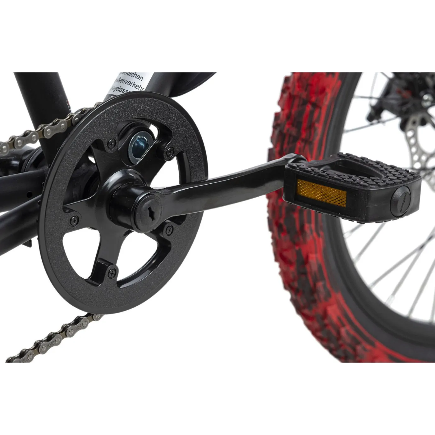 BLISS firmy KS Cycling to wytrzymały rower górski dla najmłodszych, który w niczym nie ustępuje wyglądowi dorosłych. Każda z opon z grubym bieżnikiem jest wyjątkowa, a czerwono-czarny wzór z specjalnymi efektami sprawia, że rower przyciąga wzrok. Mechaniczne hamulce tarczowe z przodu i z tyłu zapewniają bezpieczeństwo. Rower jest również wyposażony w 7-biegową przerzutkę firmy Shimano.