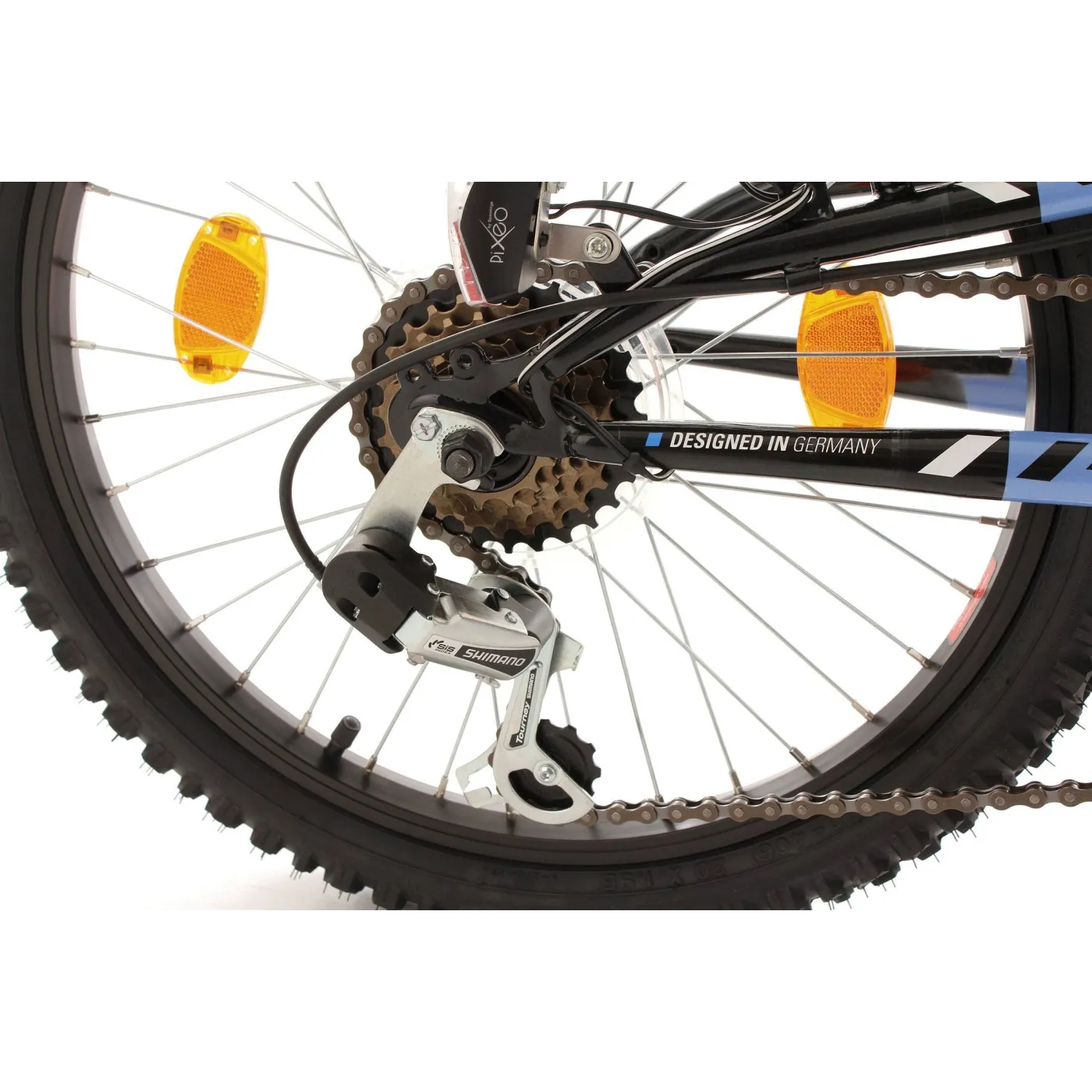 Doskonały rower górski dla chłopca lub dziewczynki, idealnie sprawdzi się jako prezent, z którego nie sposób się nie ucieszyć. Amortyzowana rama, 20 calowe opony, hamulce typu V-brake (przednie i tylne) oraz 6 biegów! Do tego w standardowym wyposażeniu znajduje się dzwonek, odblaski na kołach, oświetlenie napędzane dynamo oraz błotniki.