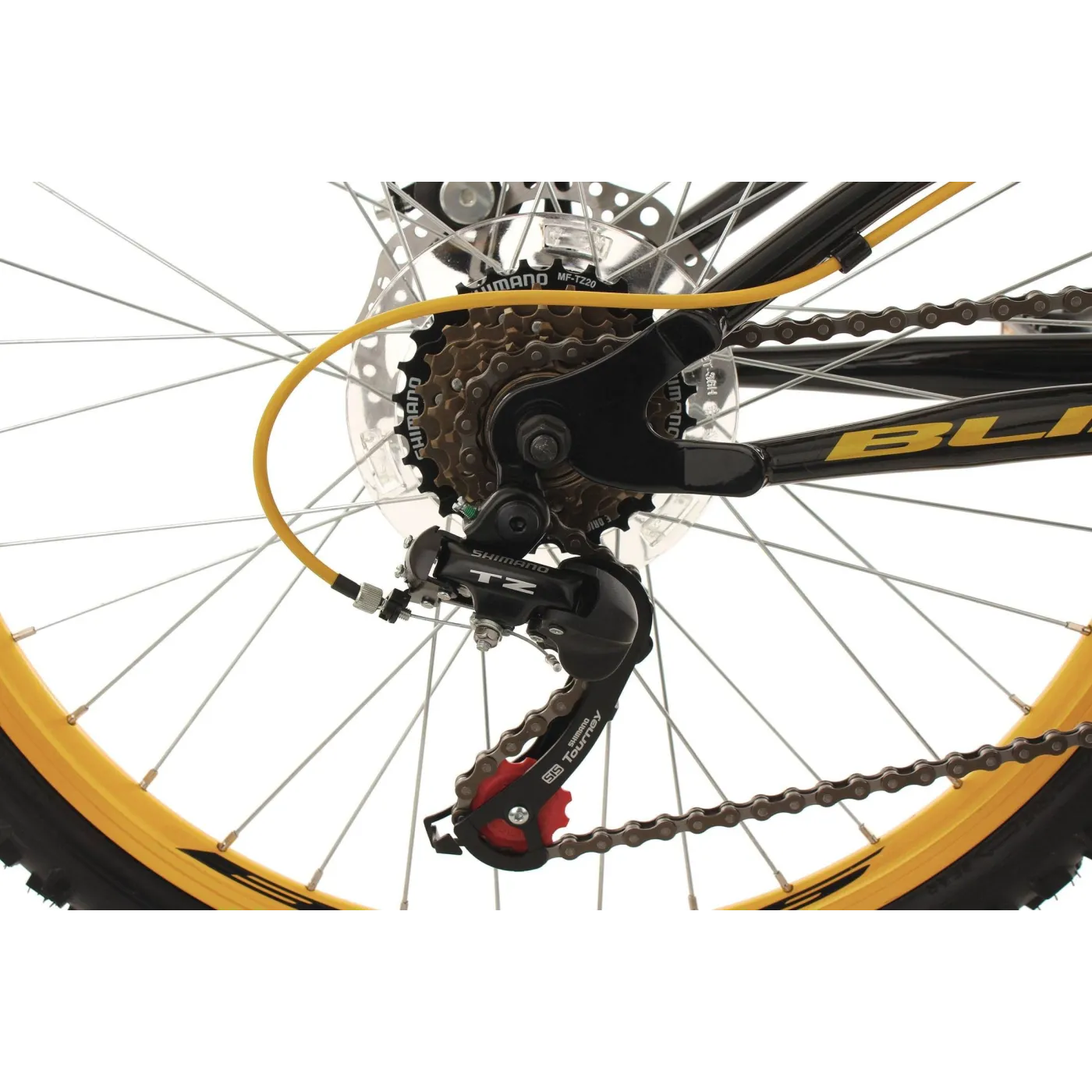 Wyposażony w 18-biegową dźwignię zmiany biegów SHIMANO, którą można wygodnie i intuicyjnie obsługiwać za pomocą obrotowej manetki. Amortyzowana rama pomaga zachować kontrolę, nawet na nierównych drogach, a dwa hamulce tarczowe zapewniają bezpieczne hamowanie w każdej sytuacji.