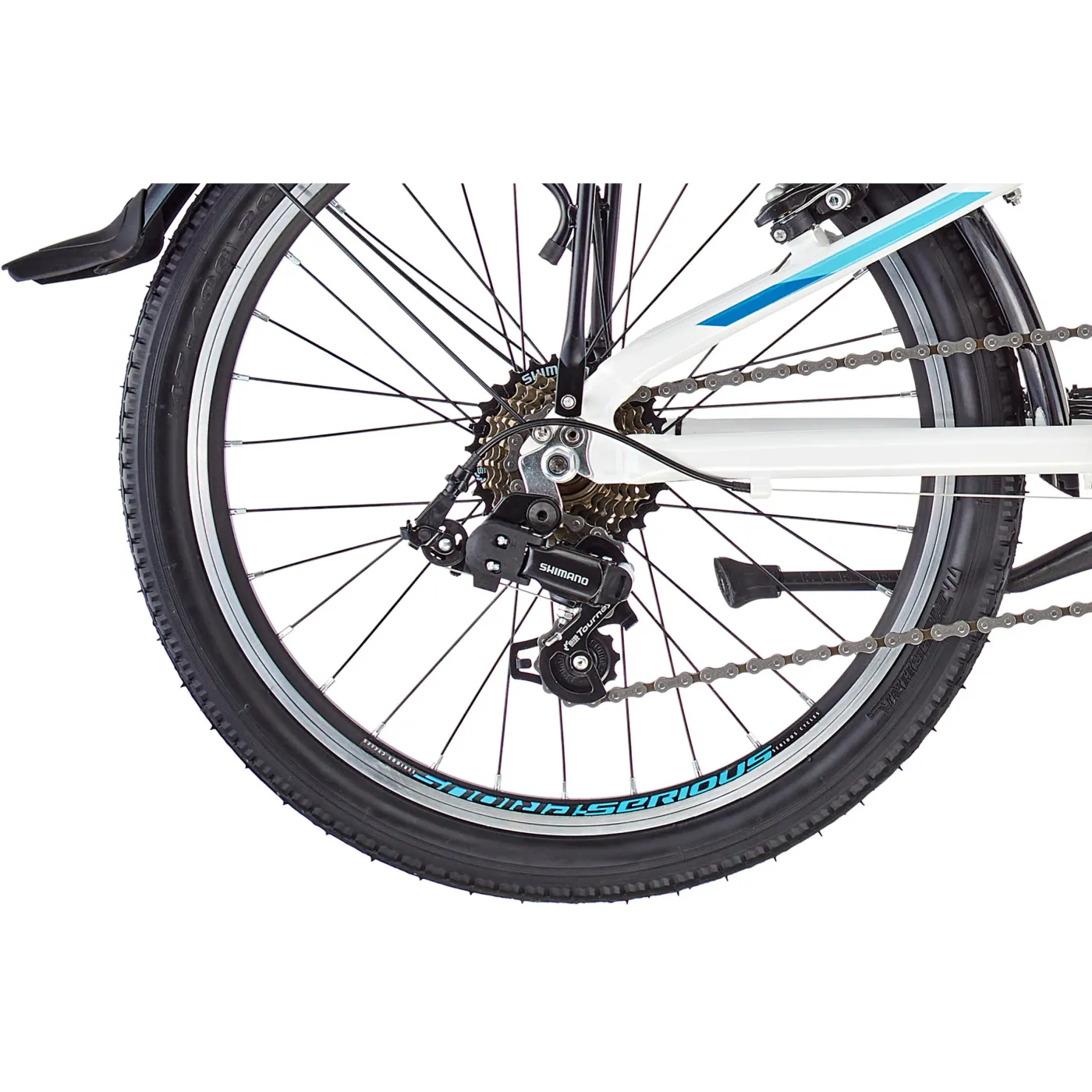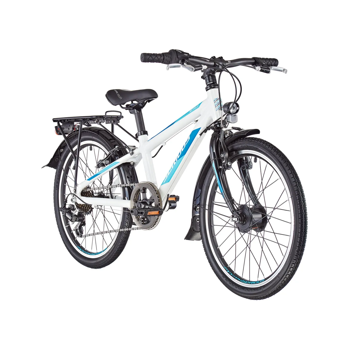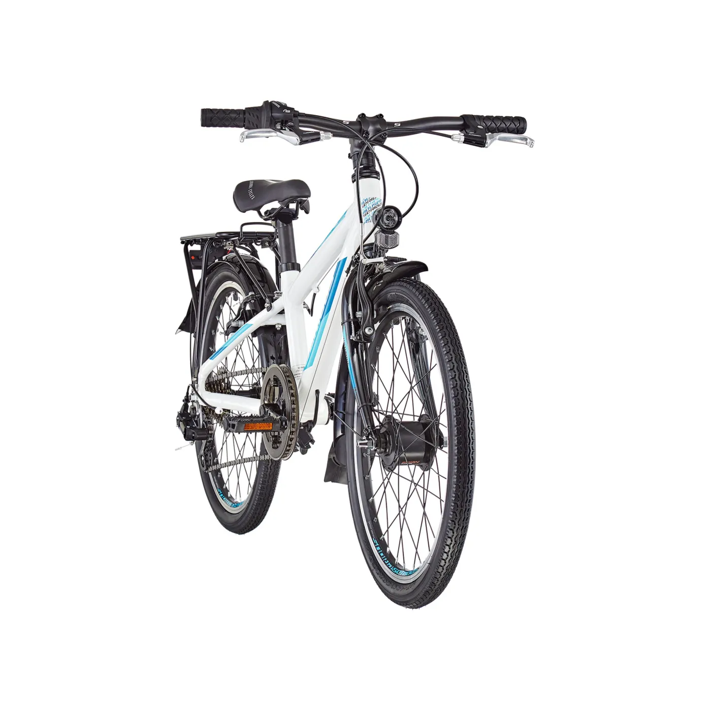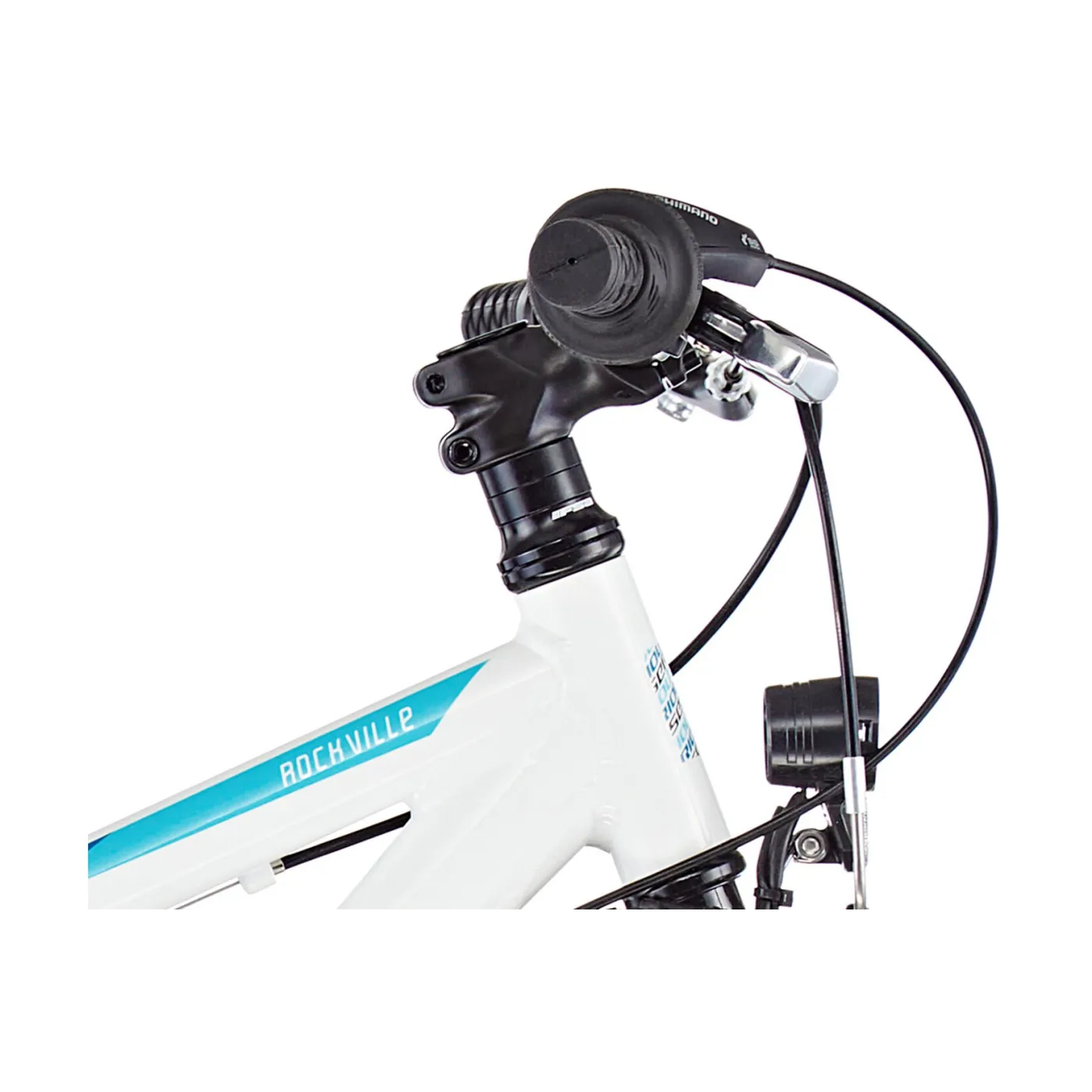 Jego lekka aluminiowa rama posiada przyjazną dla dzieci geometrię, która to pozwala na bezpieczną zabawę. Osprzęt Rockville to hamulce przednie V-break oraz 7 biegowa przerzutka Shimano Tourney - dobrane tak by skutecznie i łatwo mogły być użytkowane przez dziecko.Model jest w pełni wyposażony w wytrzymałe akcesoria typu błotniki, bagażnik, stopkę oraz system oświetlenia zasilane dynamo w piaście Shimano.