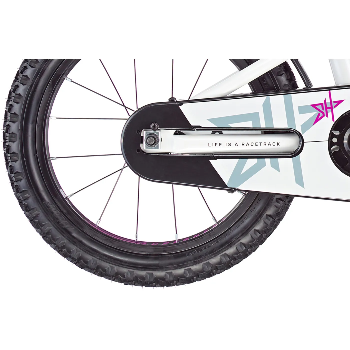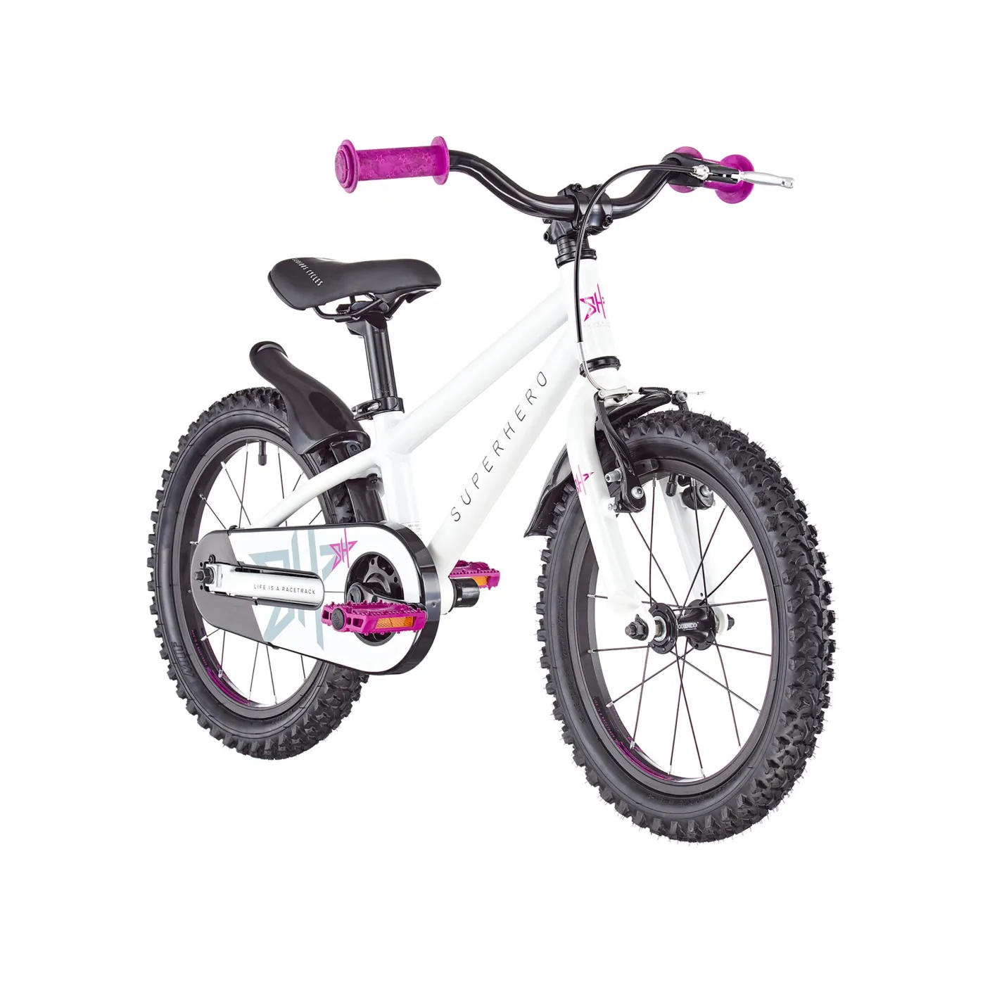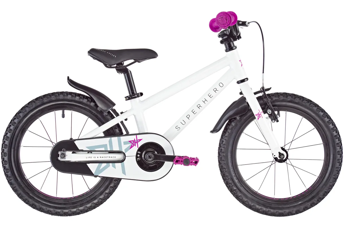 Superhero może pochwalić się wysoką przyczepnością, profilowanymi oponami, stylowymi błotnikami i szybkozamykaczem sztycy - wygląda jak prawdziwy rower dla dorosłych! Napęd z dużą osłoną łańcucha dba o dobrą kontrolę podczas jazdy, a do tego ubranie najmłodszych użytkowników pozostaje czyste. Jeśli natomiast Twoje dziecko jeszcze nie jest pewne podczas jazdy jednośladem, w zestawie znajdują się kółka boczne, które pomogą w utrzymaniu równowagi.