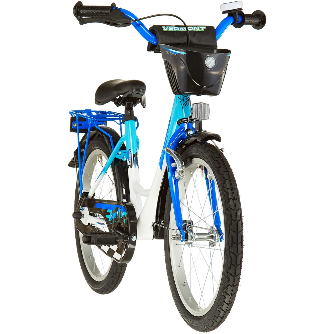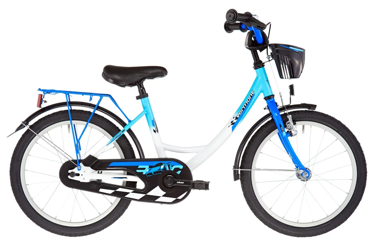 Niebieski rower dziecięcy z motywem wyścigów jest idealny dla małych rowerzystów. Marka Vermont dołączyła dodatkowe boczne kółka ułatwiające utrzymanie równowagi i podnoszące poziom bezpieczeństwa - idealne rozwiązanie dla początkujących.