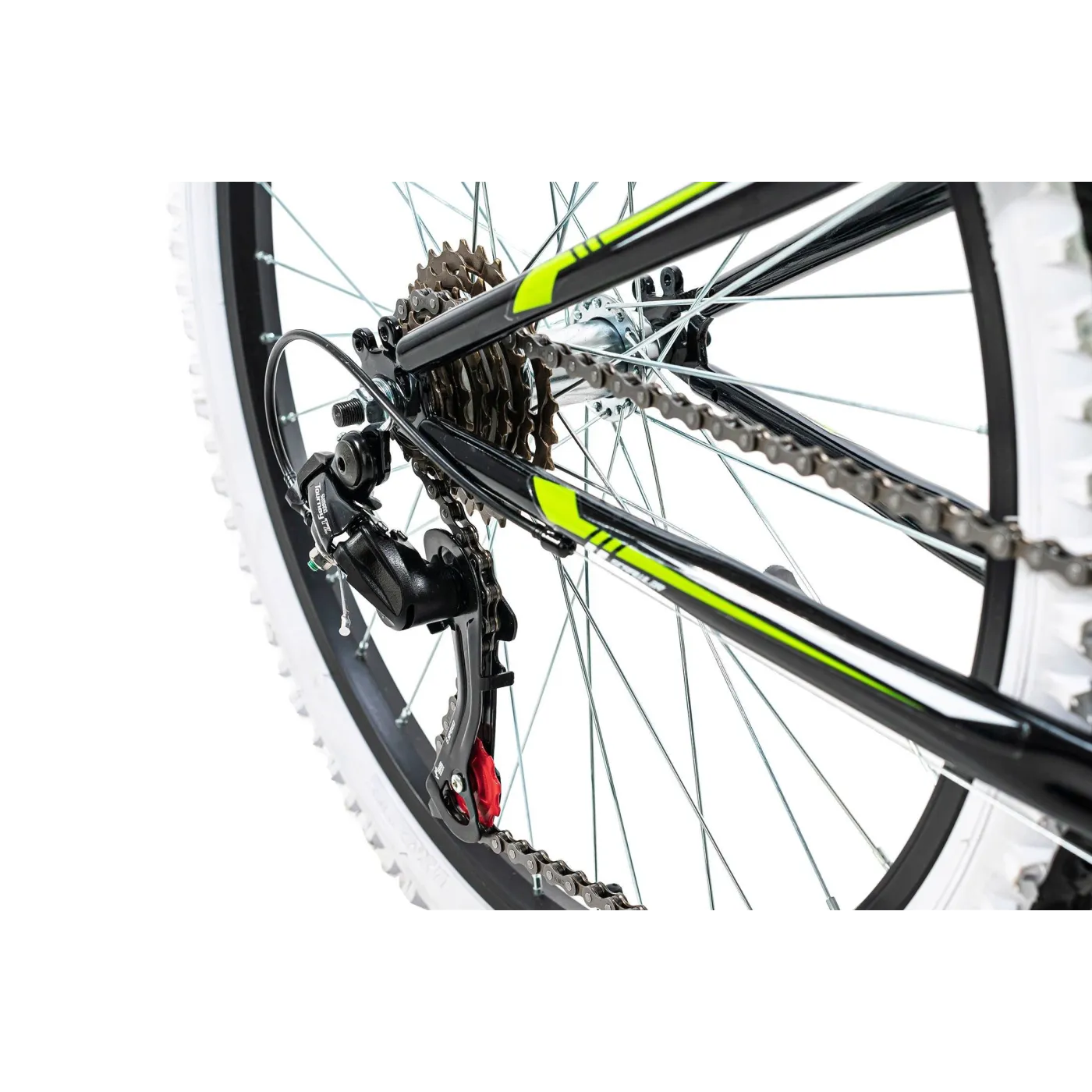 6-biegowa przerzutka SHIMANO Tourney gwarantuje płynną jazdę nawet podczas nieco dłuższych wycieczek i zapewnia niezawodne przełożenia. Dzięki nim Twoje dziecko nie zmęczy się tak bardzo wjeżdżając pod górkę. Każde dziecko bez żadnego problemu zmieni biegi za pomocą intuicyjnej i prostej w obsłudze manetki obrotowej. Lekko profilowana kierownica daje najlepszą możliwą kontrolę nad rowerem. Hamulce z przodu i z tyłu pozwalają na bezpieczne hamowanie w każdej sytuacji.