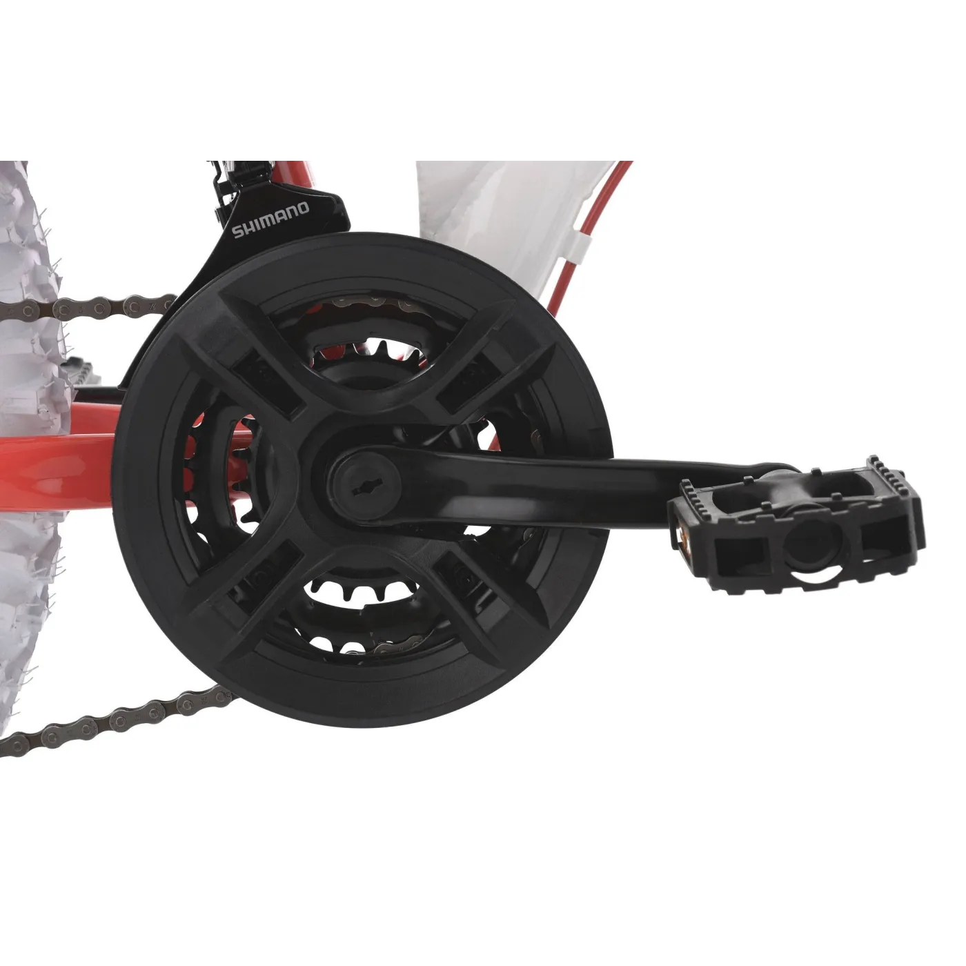 Biała rama z czerwonymi detalami przyciąga wzrok wszystkich i sprawia, że jazda jest jeszcze bardziej satysfakcjonująca. Wyposażenie techniczne roweru również nie pozostawia wiele do życzenia. Rower z pełnym zawieszeniem jest wyposażony w hamulce tarczowe, 21-biegową przerzutkę SHIMANO, a dla dopełnienia posiada także amortyzację widelca oraz ramy. Wszystko to sprawia, że rower jest niezawodny dla małych rowerzystów.