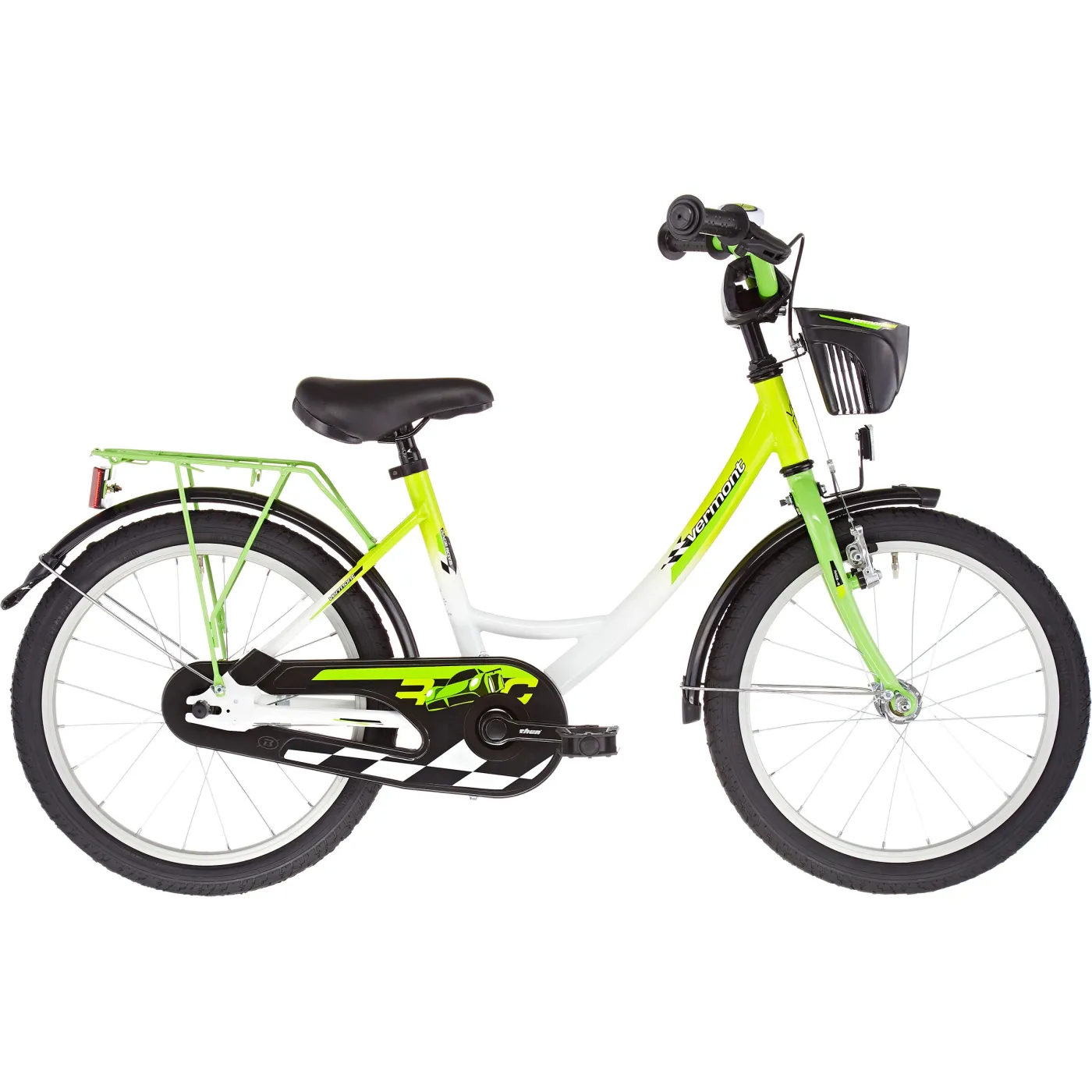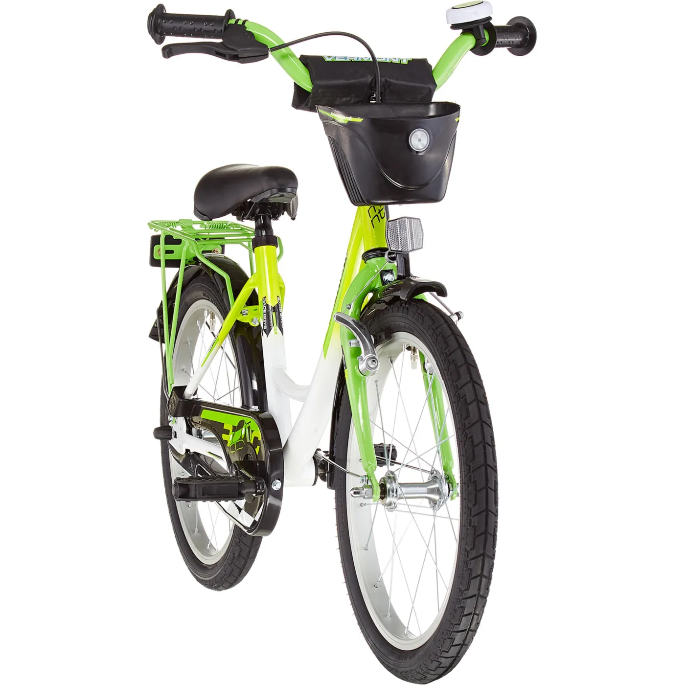 Dzieci entuzjastycznie podchodzą do świetnego wyglądu rowerka. Oprócz ramy z głębokim wejściem, rower dla dzieci Vermont ma stabilne aluminiowe felgi, hamulec torpedo i hamulec przedni z regulowanymi dźwigniami oraz ochraniacz na kierownicę. Kolejną atrakcją jest tylny przydatny bagażnik oraz osłona na łańcuch, wszystko dodaje uroku. Dodatkowo rower posiada boczne kółka, które pozwolą zachować stabilność i łatwo przejść na jazdę na dwóch kołach.