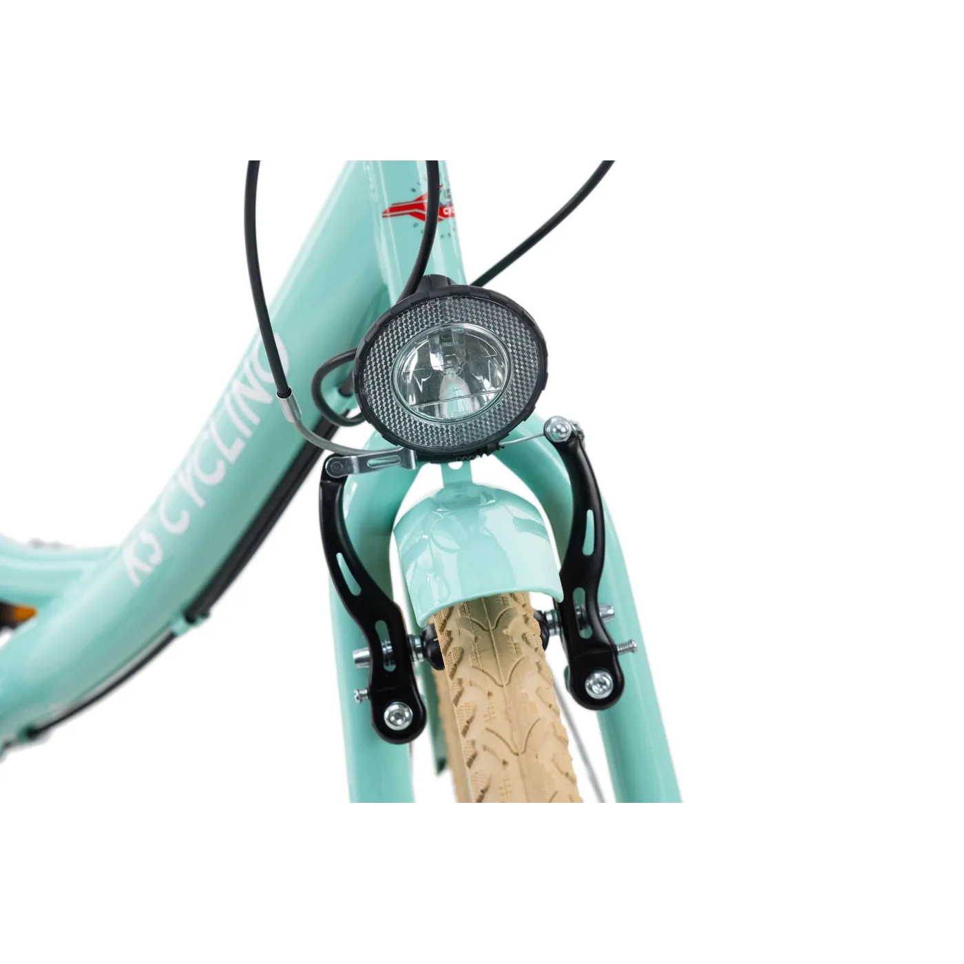 24-calowy rower dziecięcy Ballon firmy KS Cycling w dziewczęcej, pastelowej kolorystyce. Sprawdzi się znakomicie m.in. podczas rekreacyjnych wypraw z rodzicami oraz jako środek transportu do szkoły. Rower jest wyposażony w hamulce typu V-brake, niezbędne oświetlenie, odblaski oraz dzwonek. Plecak, kurtkę i najpotrzebniejsze rzeczy można łatwo przechowywać na bagażniku.