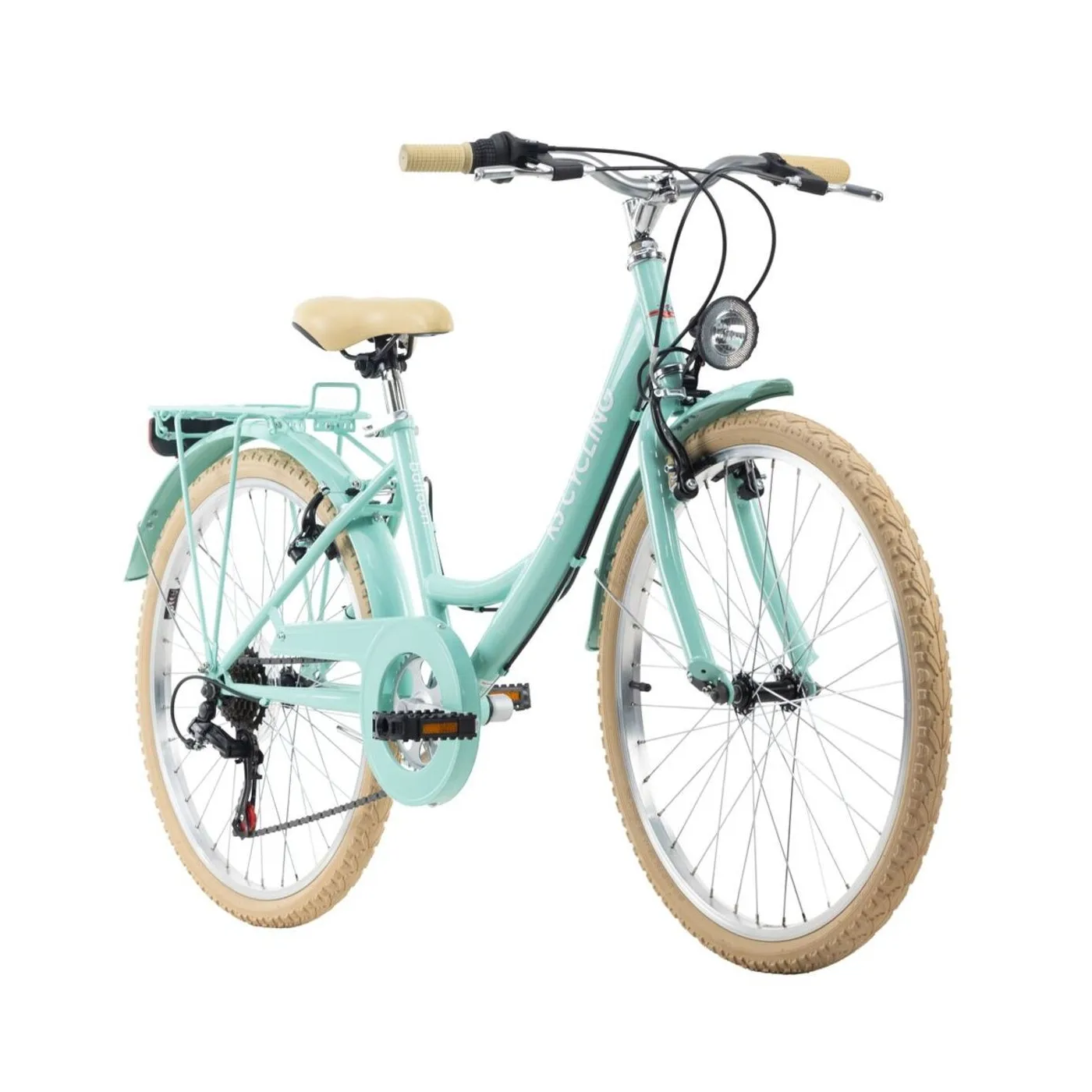 24-calowy rower dziecięcy Ballon firmy KS Cycling w dziewczęcej, pastelowej kolorystyce. Sprawdzi się znakomicie m.in. podczas rekreacyjnych wypraw z rodzicami oraz jako środek transportu do szkoły. Rower jest wyposażony w hamulce typu V-brake, niezbędne oświetlenie, odblaski oraz dzwonek. Plecak, kurtkę i najpotrzebniejsze rzeczy można łatwo przechowywać na bagażniku.
