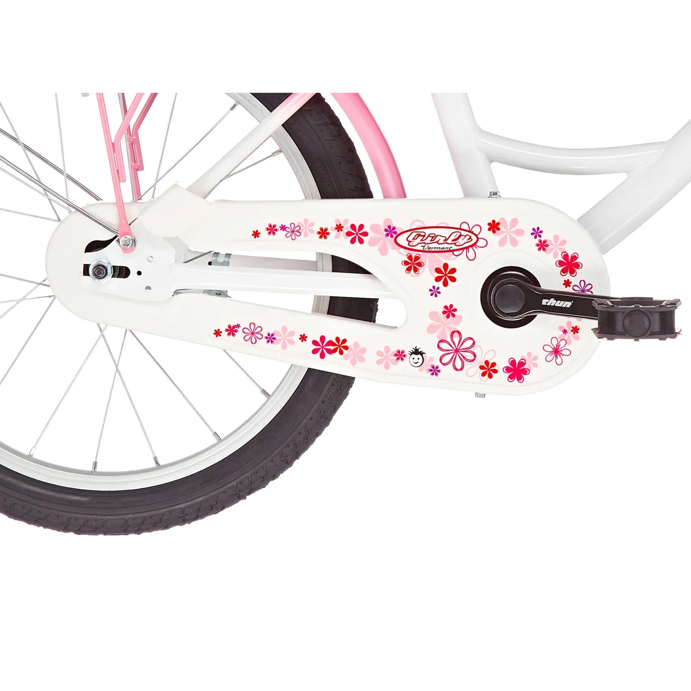 Vermont Girly Summer posiada niską ramę, co w dużym stopniu ułatwia małym rowerzystkom wsiadanie na niego. Stabilne aluminiowe koła, osłona łańcucha oraz przyjazne hamulce przystosowane do wieku sprawiają, że nie musisz się martwić o bezpieczeństwo Twojego dziecka podczas zabawy.