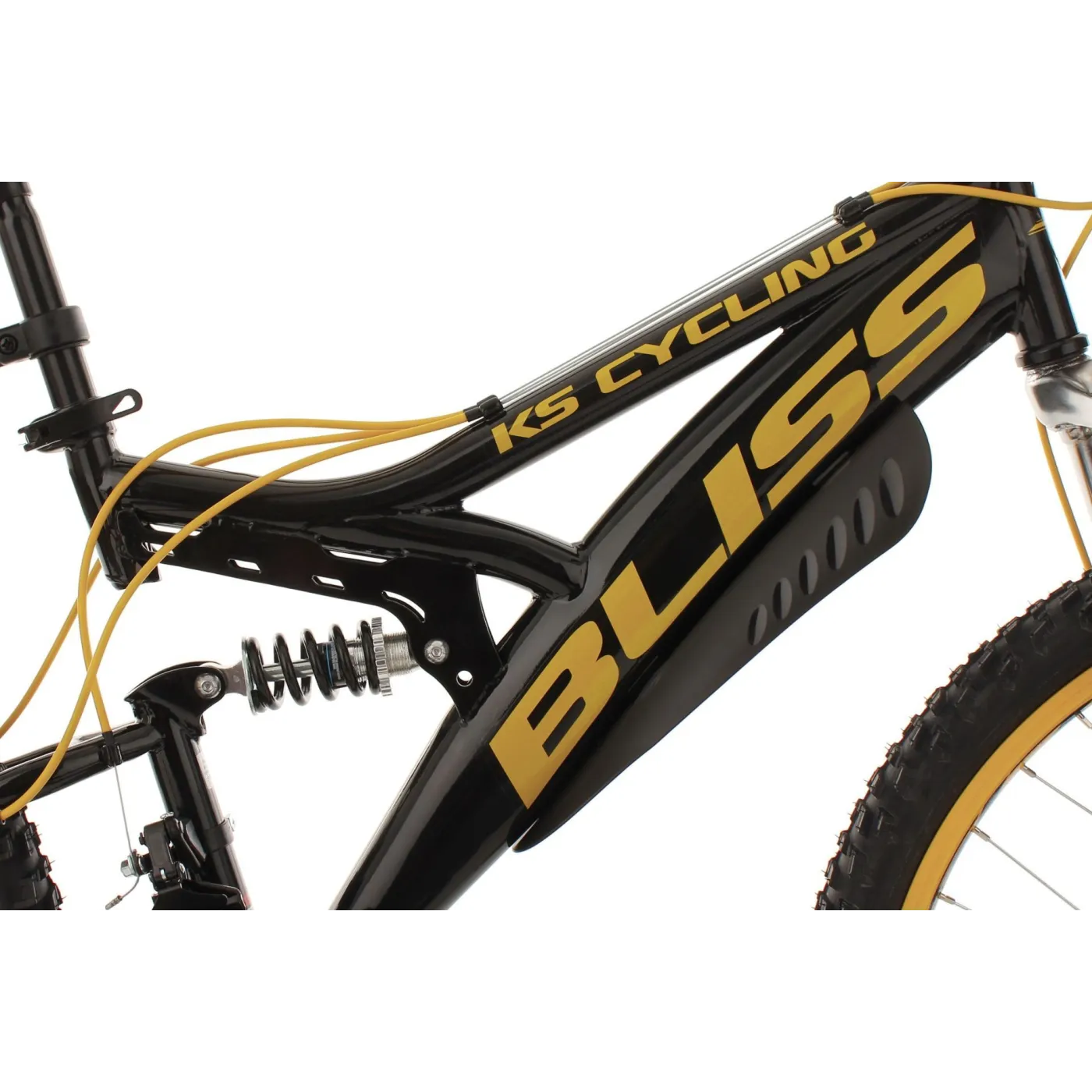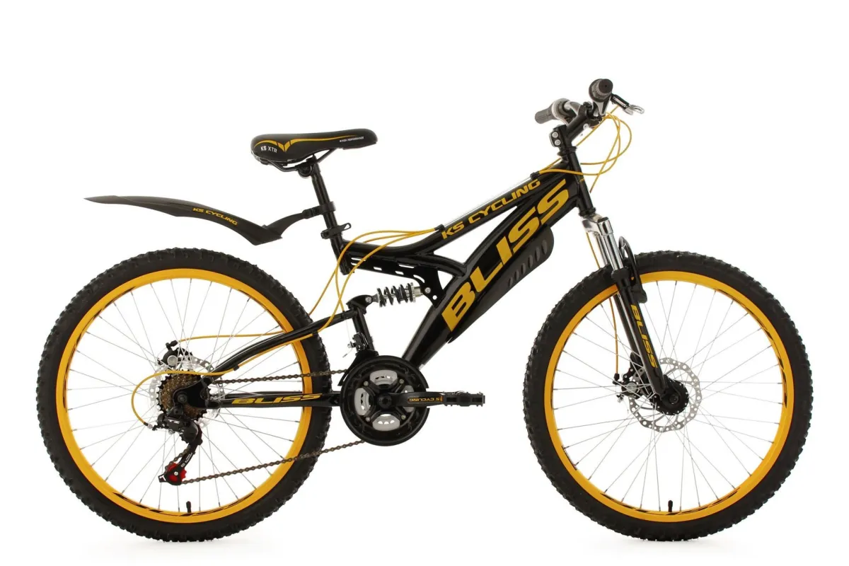 Rower BLISS firmy KS Cycling to solidny sprzęt, który wyglądem niczym nie odbiega od pełnowymiarowych górskich rowerów. Czarna rama z pomarańczowymi detalami jest z pewnością jego głównym wizualnym atutem.