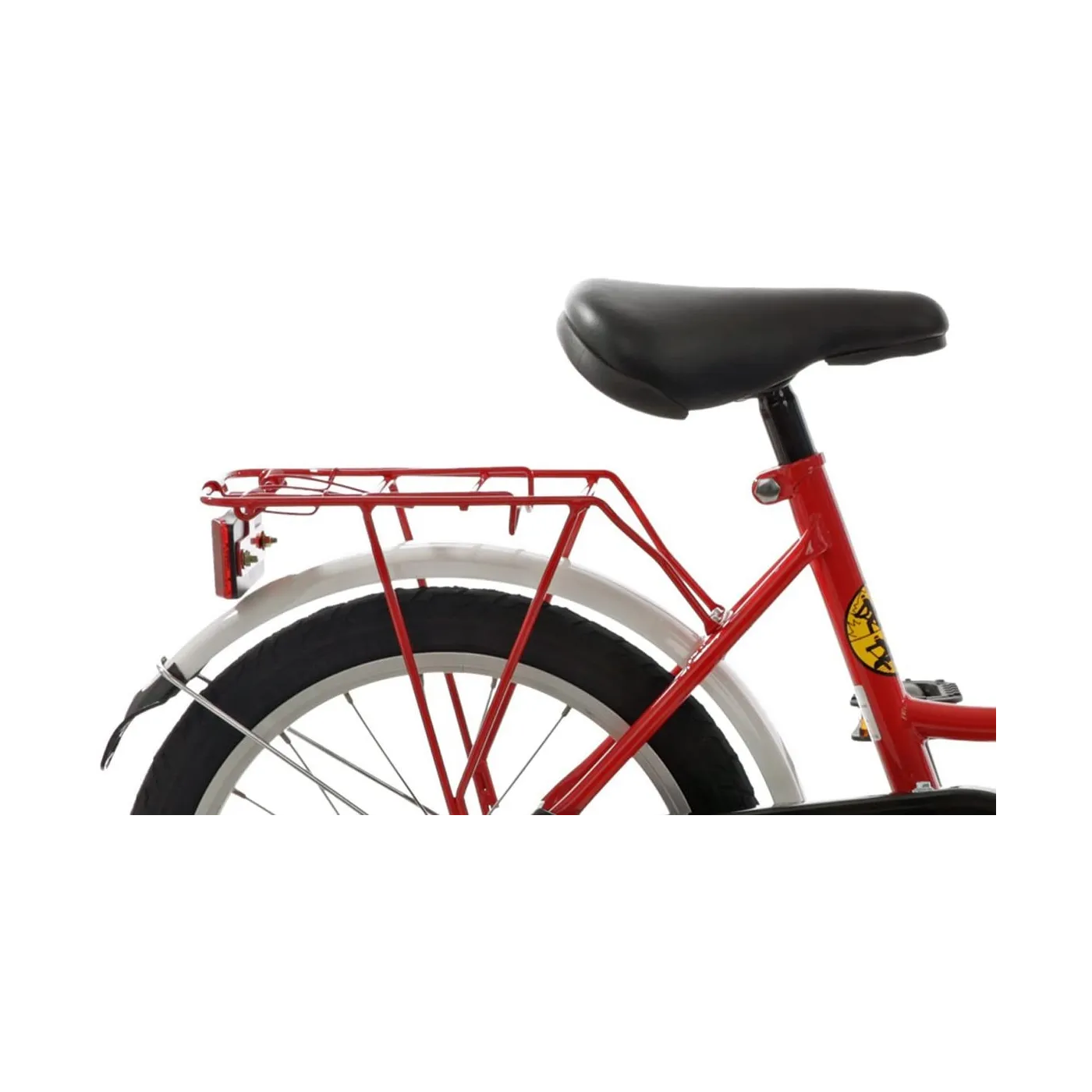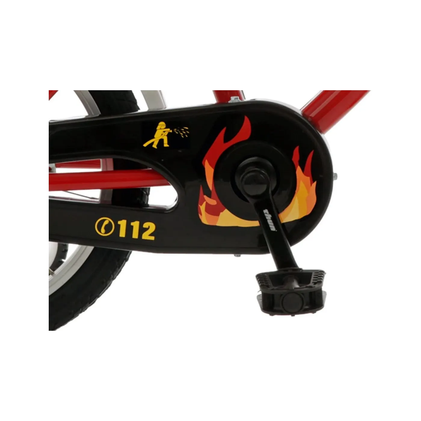 Jaskrawoczerwony kolor ramy z odblaskowymi elementami oraz motyw straży pożarnej nie tylko wygląda świetnie, ale dzięki temu zapewniona jest widoczność. Dodatkowo rower posiada akcesoria typu bagażnik oraz koszyk z przodu, które pozwolą na przewożenie drobiazgów.