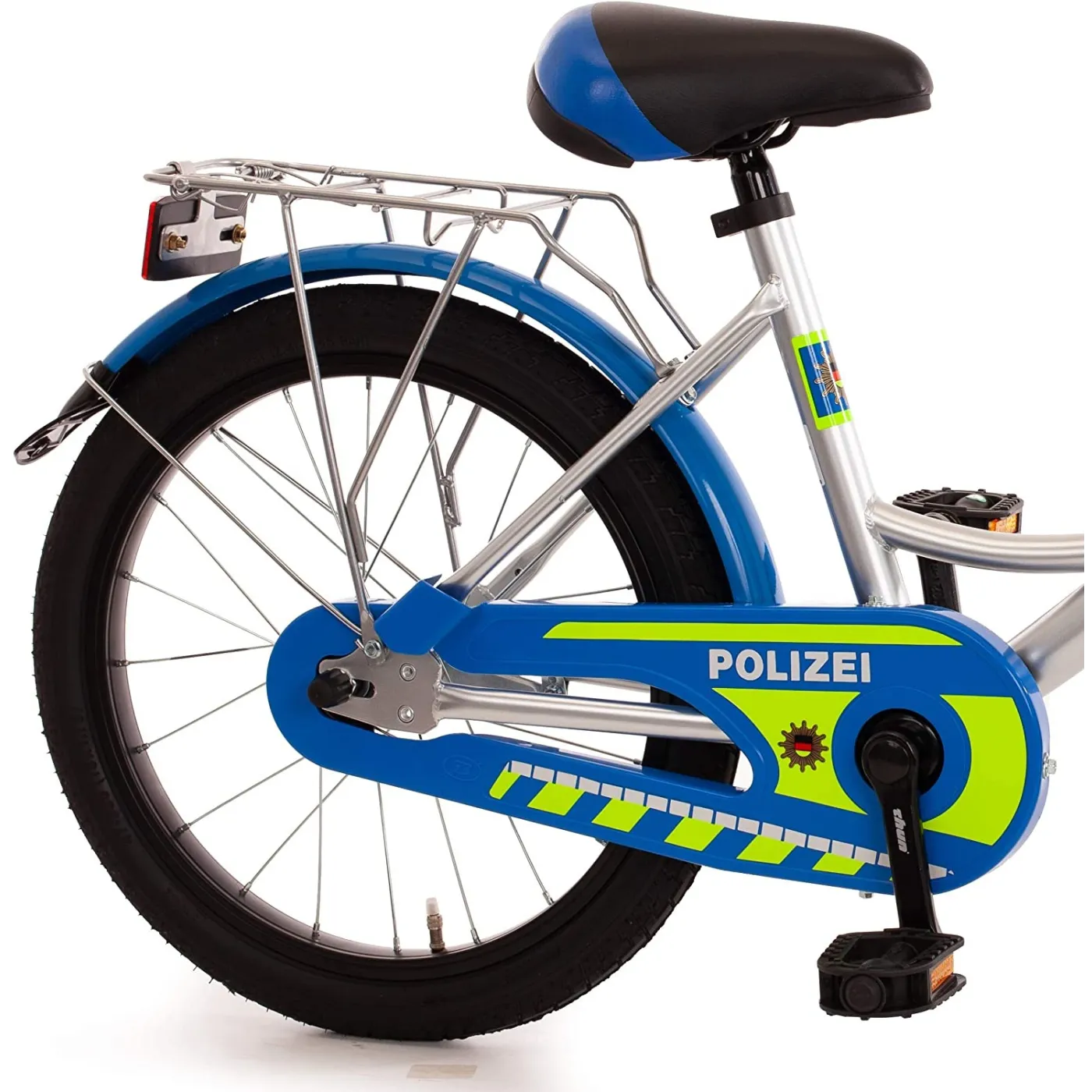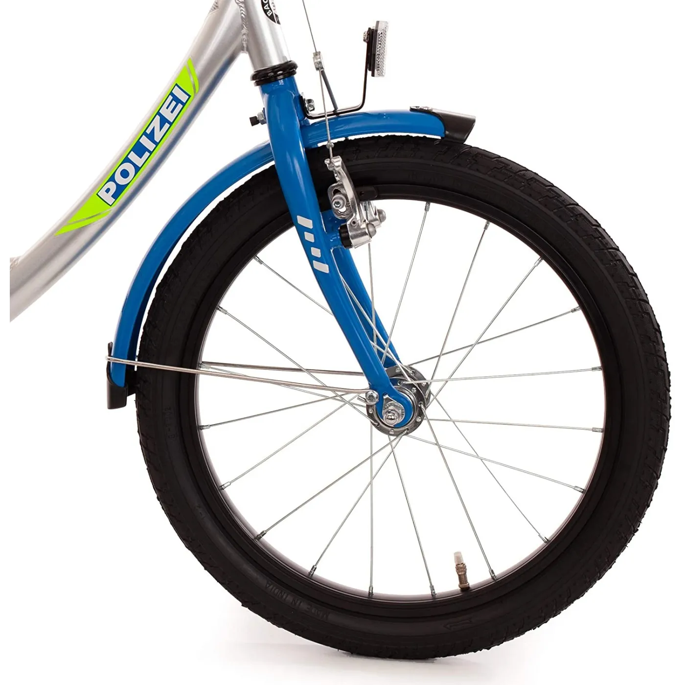Dwa hamulce: V-brake i torpedo (kontra) wprowadzą w nawyk hamowania również klamką. Wygodna, obniżona rama ułatwia wsiadanie i zsiadanie z rowerka, gripy z kołnierzami zapewniają bezpieczny uchwyt. Dodatkowo rowerek posiada osłonę na łańcuch, błotniki, bagażnik oraz odblaski i dzwonek.