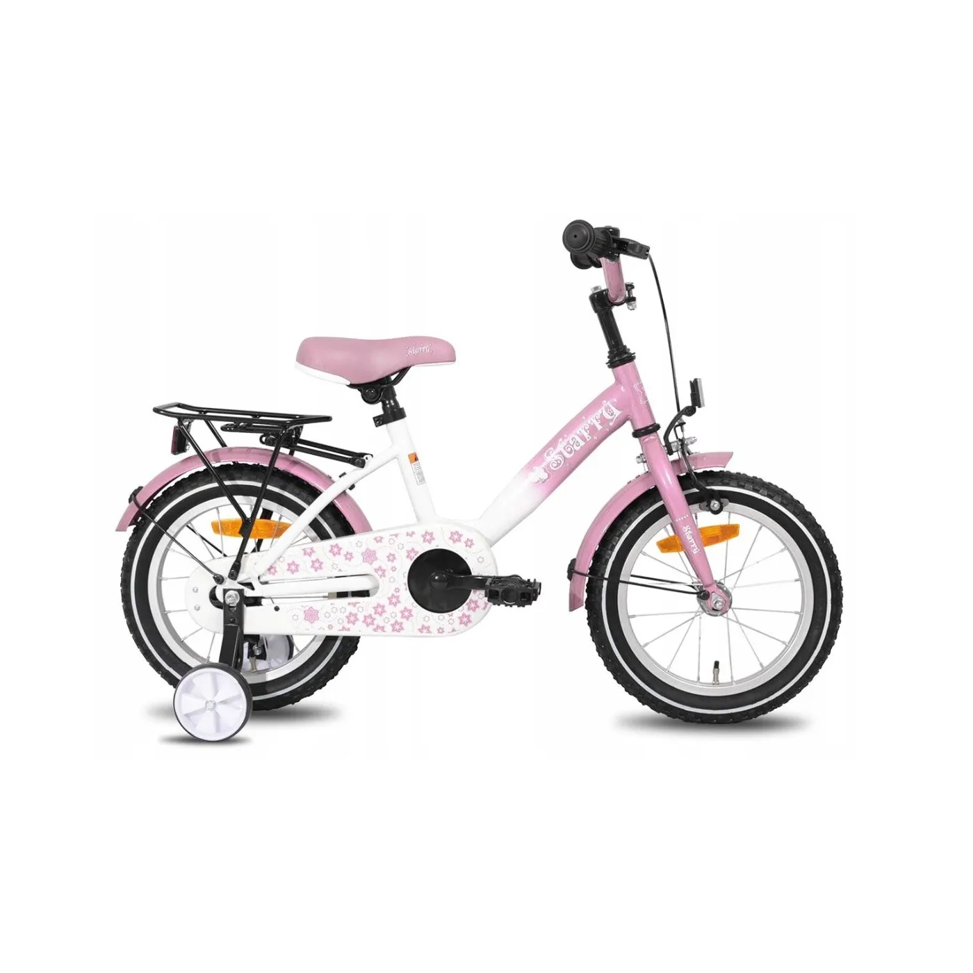 Róż to kolor dominujący u Twojej córeczki? Rower Starry to model, o którym marzy. Jest wyposażony w tylny bagażnik na którym zmieści swoją ulubioną zabawkę, a koła boczne pomogą w nauce jazdy. Zachwyci każdą małą księżniczkę swoim urokiem i przepiękną barwą kolorystyczną z lekkim efektem ombre.
